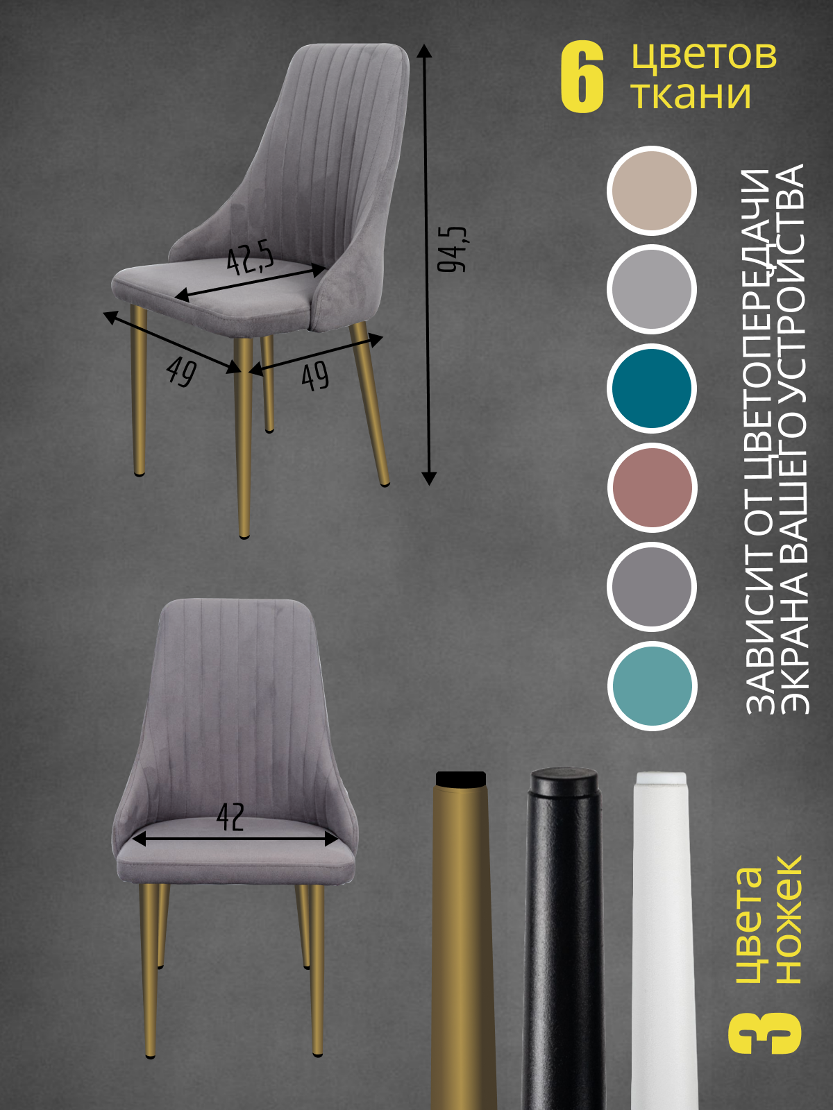Стул "Кора" Azzurro mebel, 1 шт, антивандальный велюр, серый, золотистые ножки 8 811 ₽