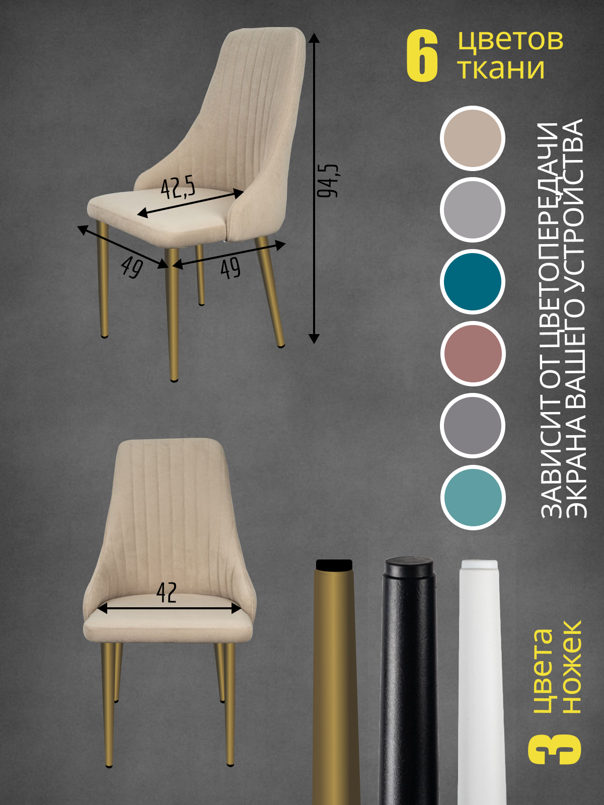 10 цен на Стул "Кора" Azzurro mebel, 1 шт, антивандальный велюр, бежевый, золотистые ножки