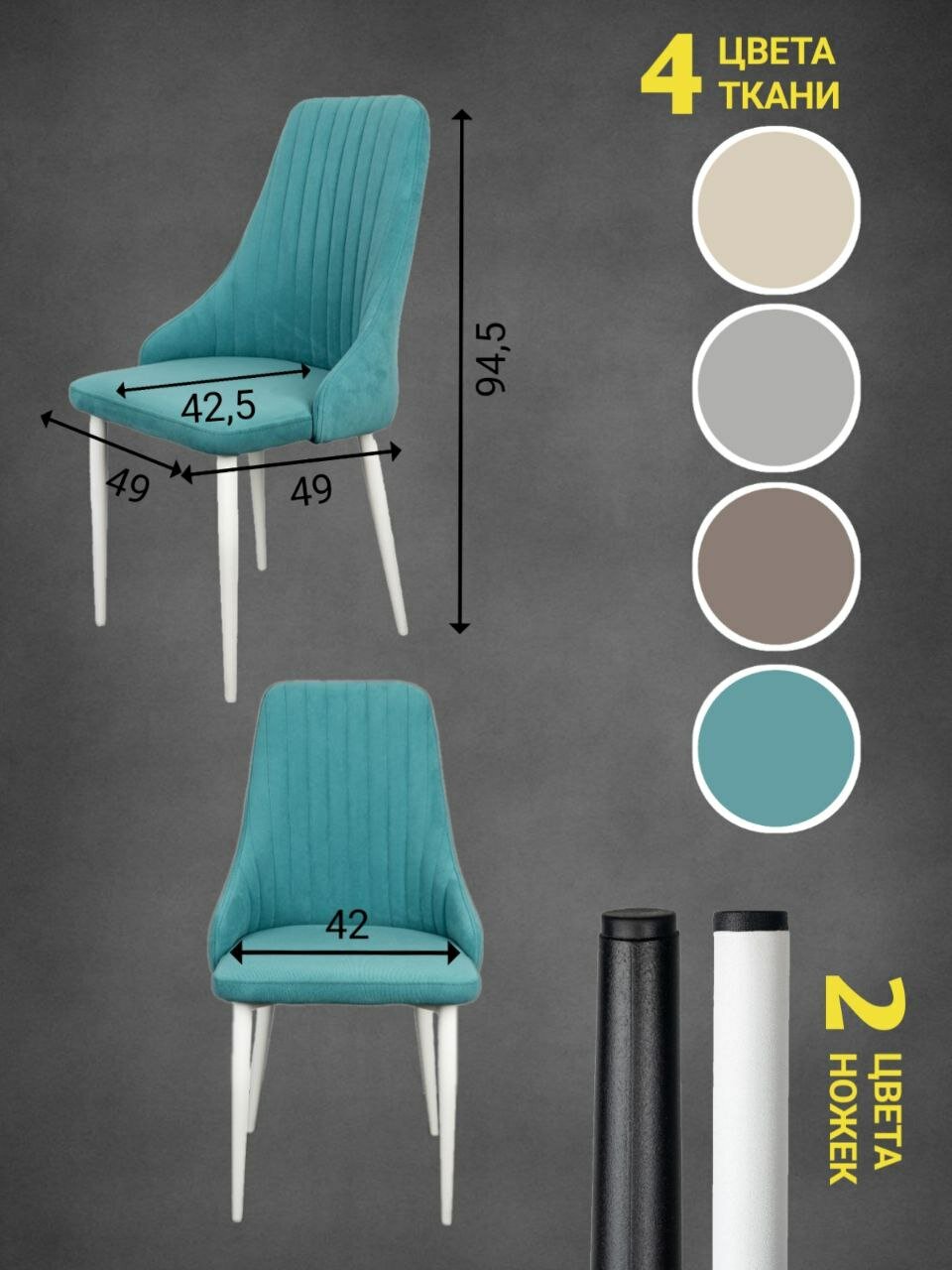 Стул "Кора" Azzurro mebel, 1 шт, антивандальный велюр, серый, белые ножки 8 900 ₽