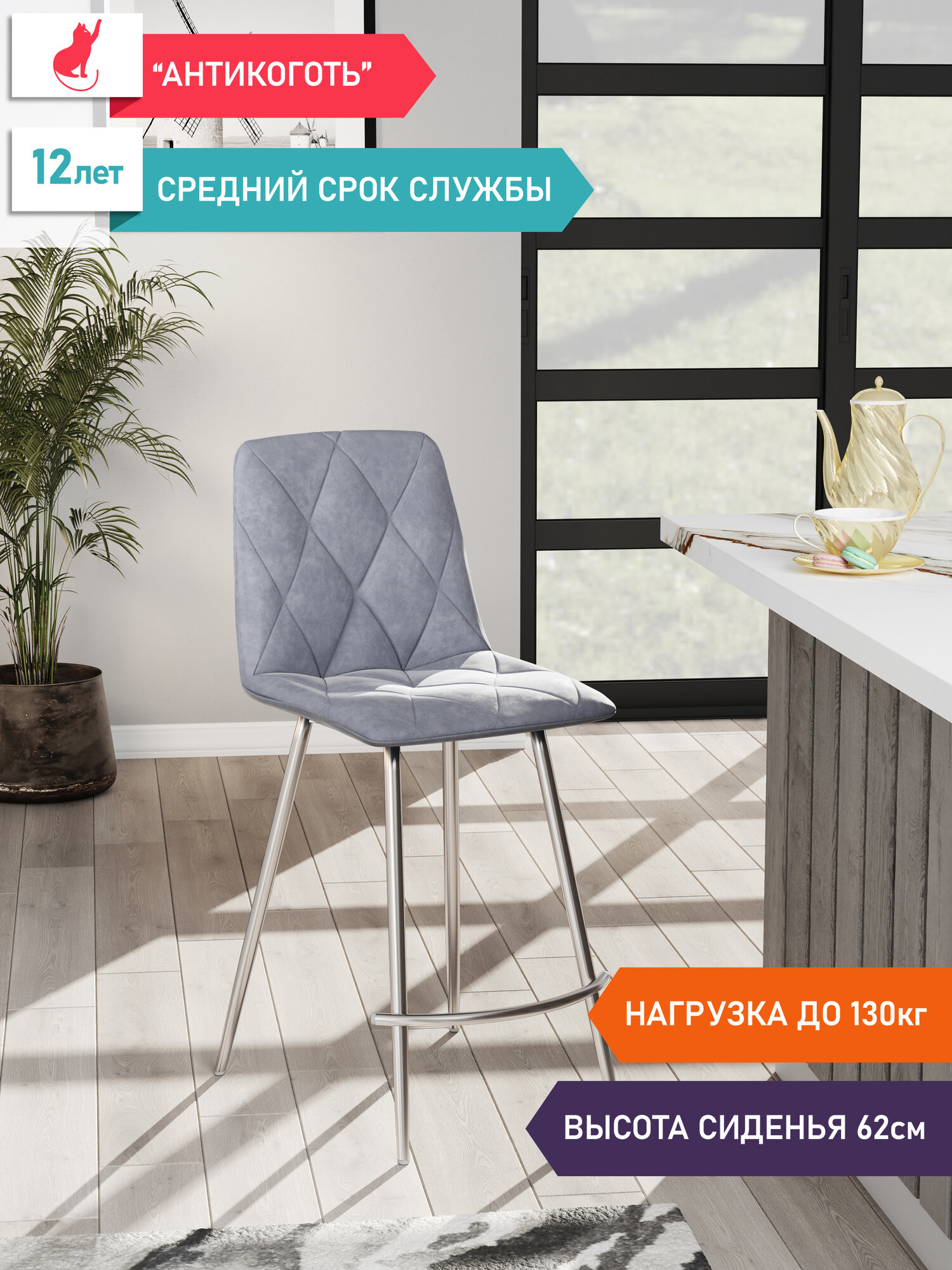 Стул полубарный Ричи, DecoLine, велюр, 1 шт. информация: