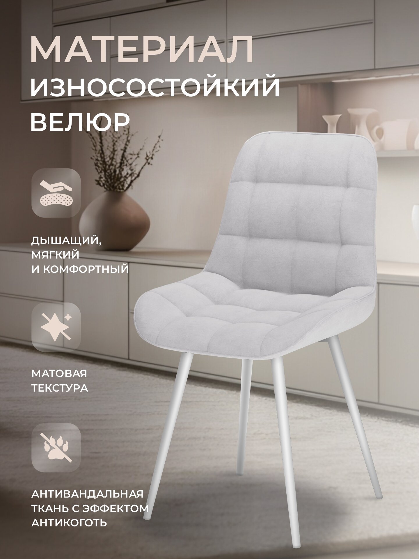 Отзывы на Стулья для кухни комплект 2 шт, стул мягкий со спинкой, велюр, румба, светло-серый