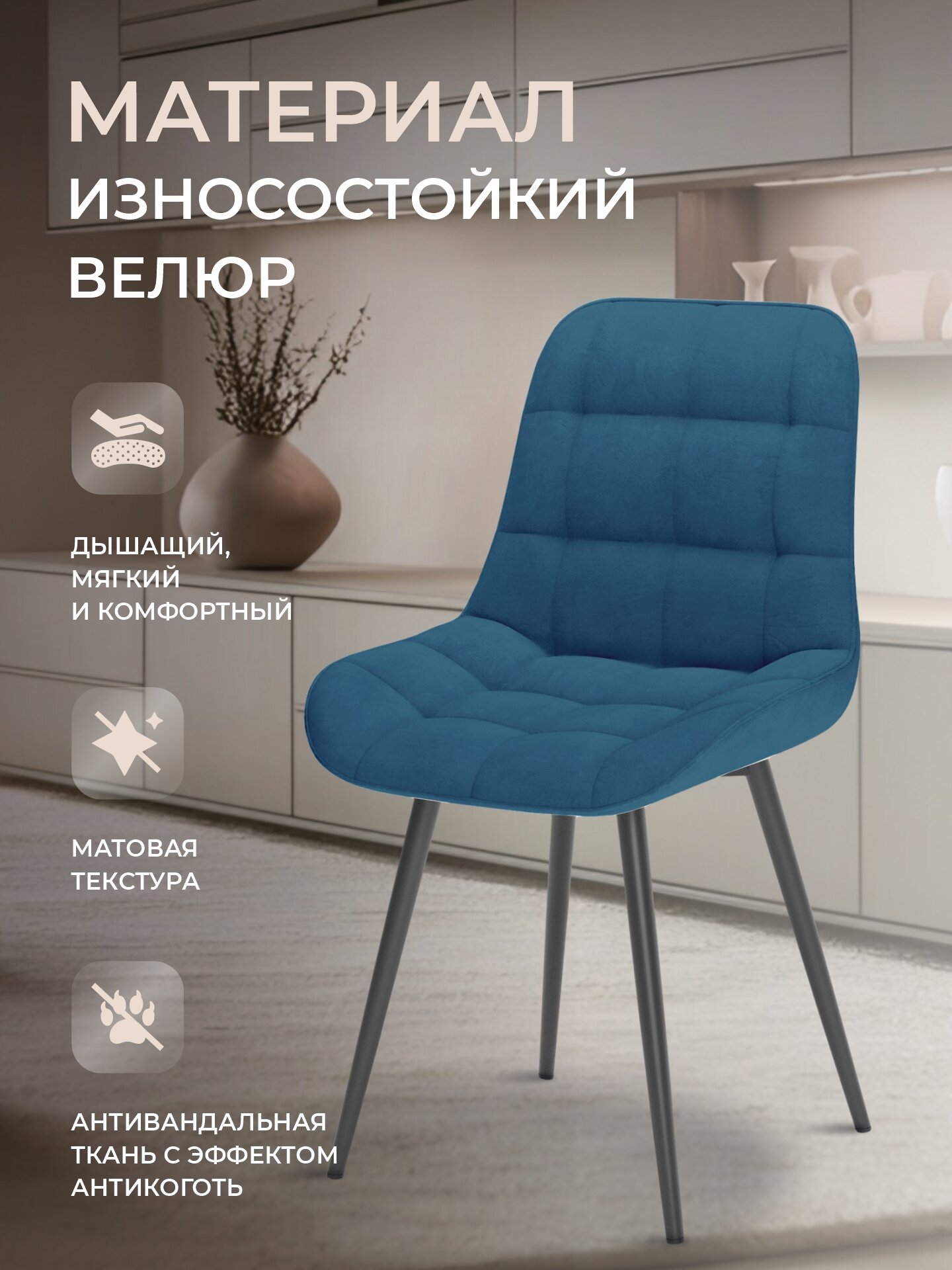 Характиристики этого товара не найдены!Отзывы на Стулья для кухни комплект 2 шт, стул мягкий со спинкой, велюр, румба, синий