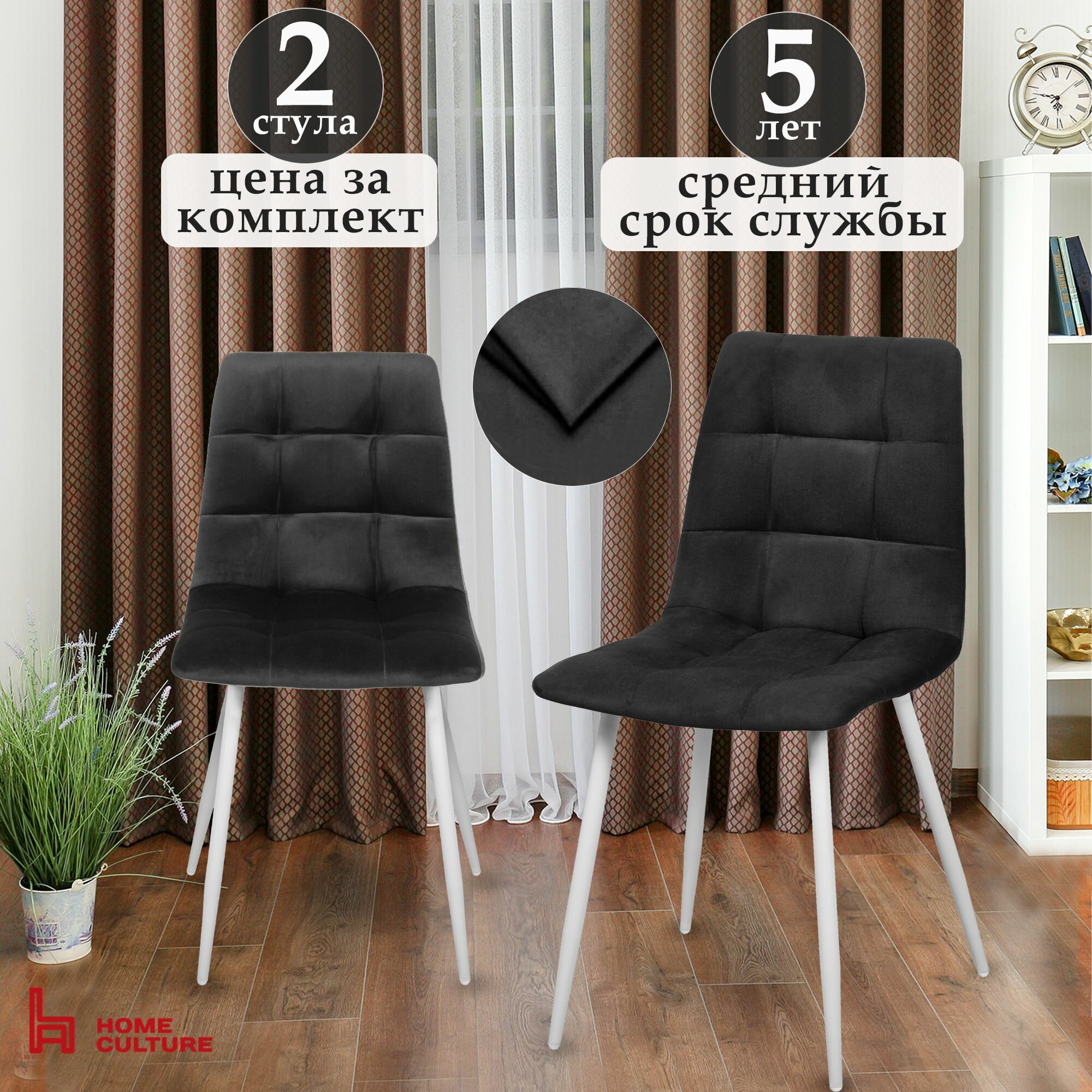 10 цен на Стулья для кухни мягкие Чили 2 шт со спинкой интерьерные, черный каркас белый