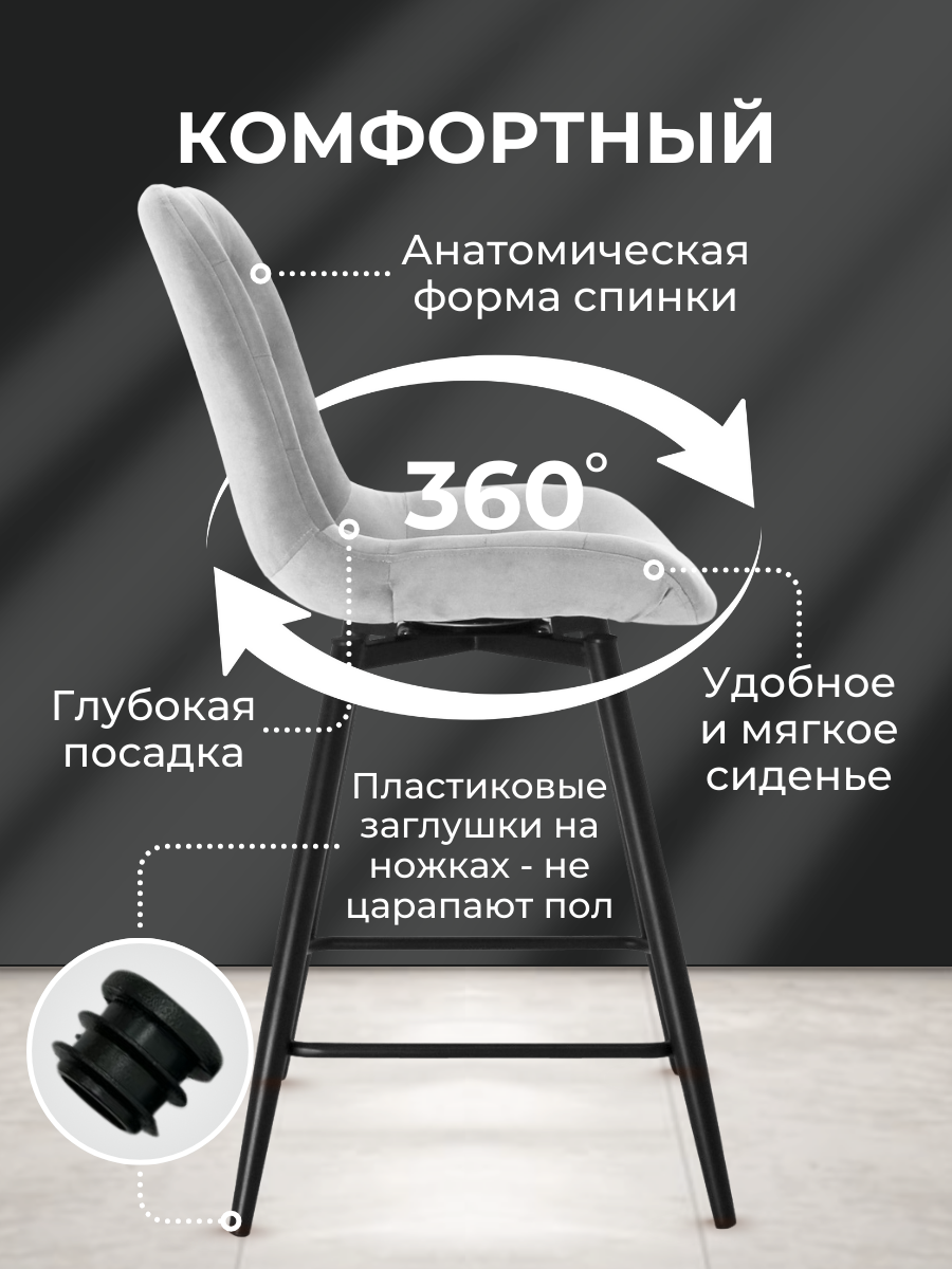 10 цен на Барный стул с мягким сиденьем и спинкой, поворотный механизм, виста