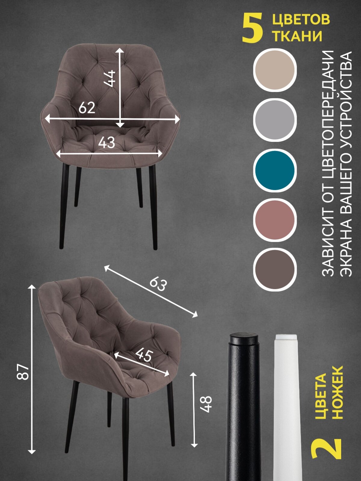 Стул кухонный, офисный, Данкор, Azzurro mebel, антивандальный велюр, серо-коричневый, черные ножки информация: