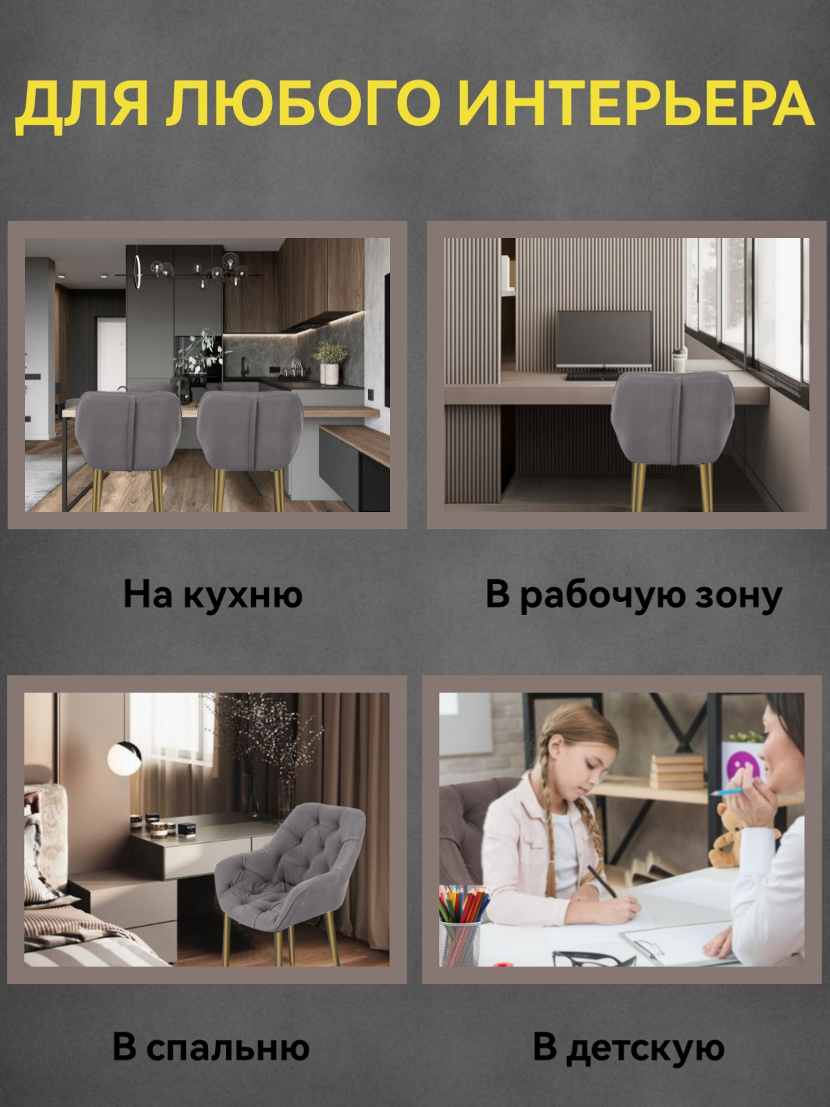 Характиристики этого товара не найдены!Отзывы на Стул кухонный, офисный, Данкор, Azzurro mebel, антивандальный велюр, серо-коричневый, золотистые ножки