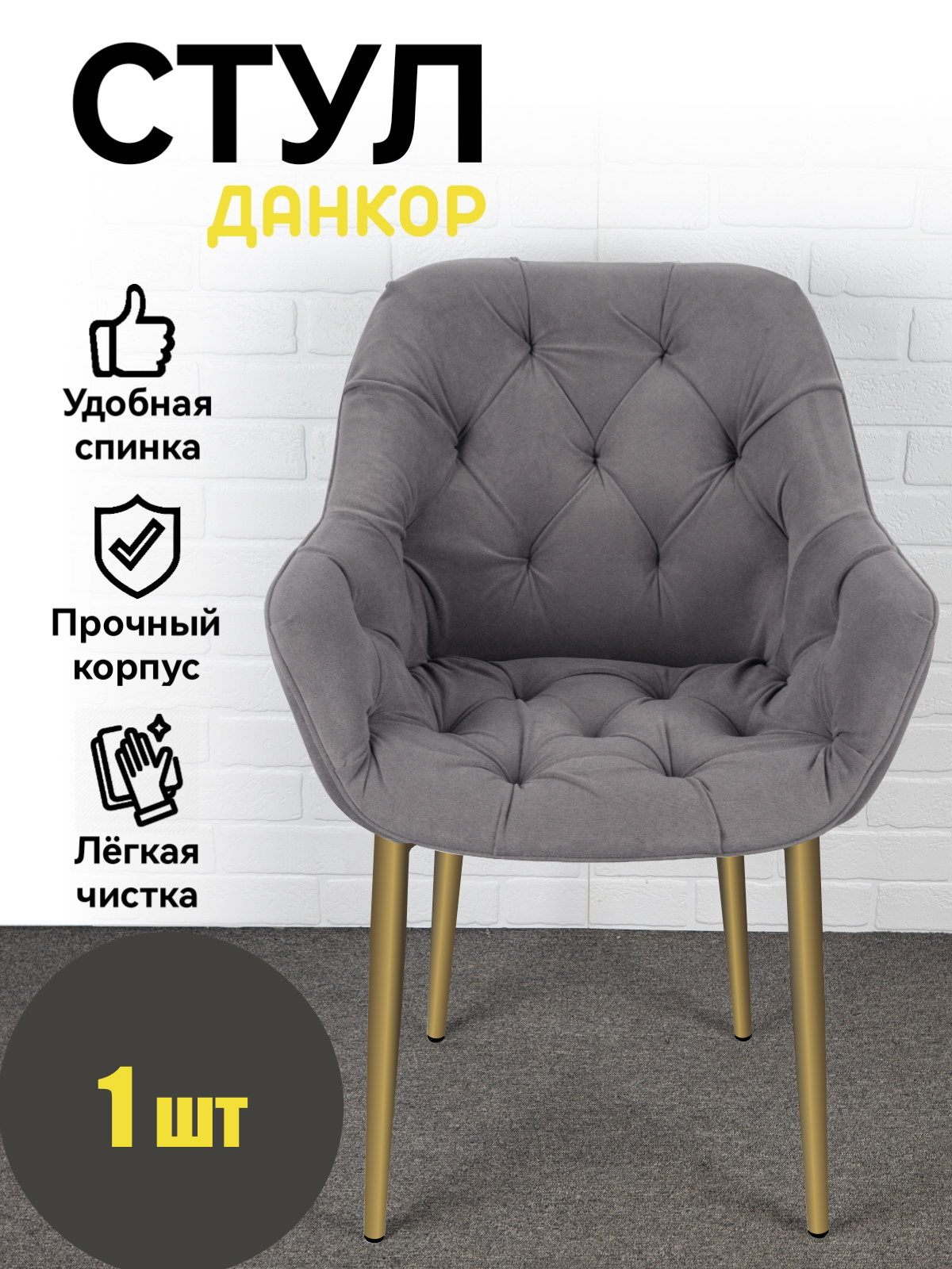 Стул кухонный, офисный, Данкор, Azzurro mebel, антивандальный велюр, серый, золотистые ножки 10 400 ₽