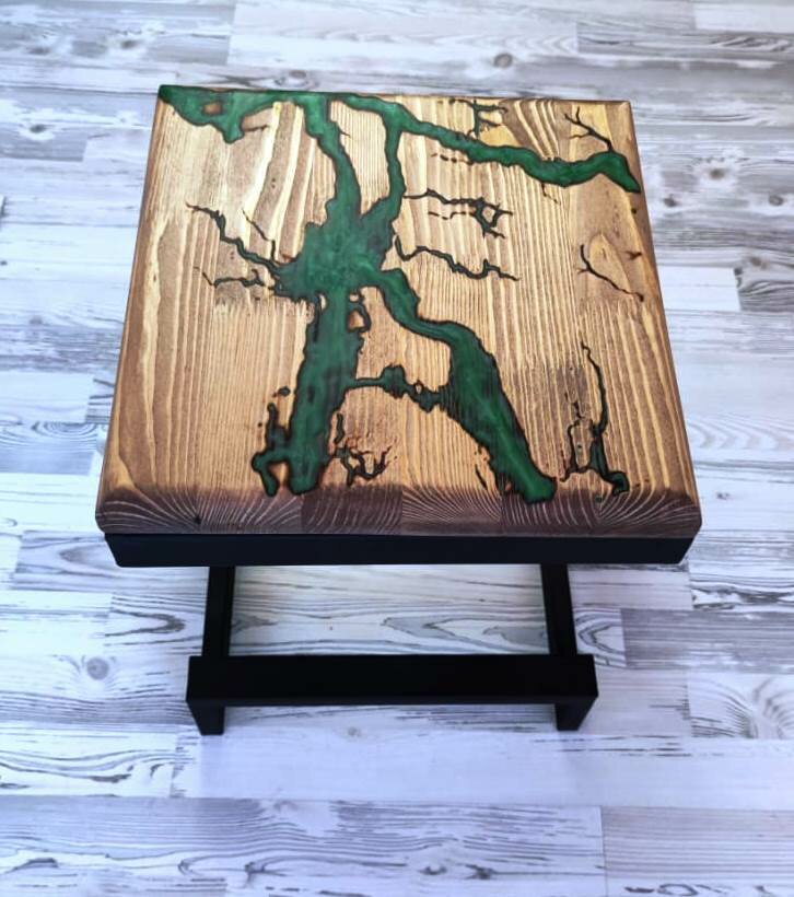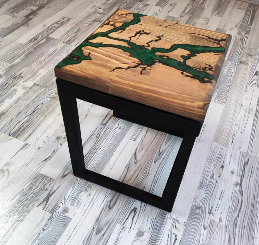 Табурет на массиве сосны цвета золотистый дуб с зелёными молниями в стиле лофт 35х35х45 информация: