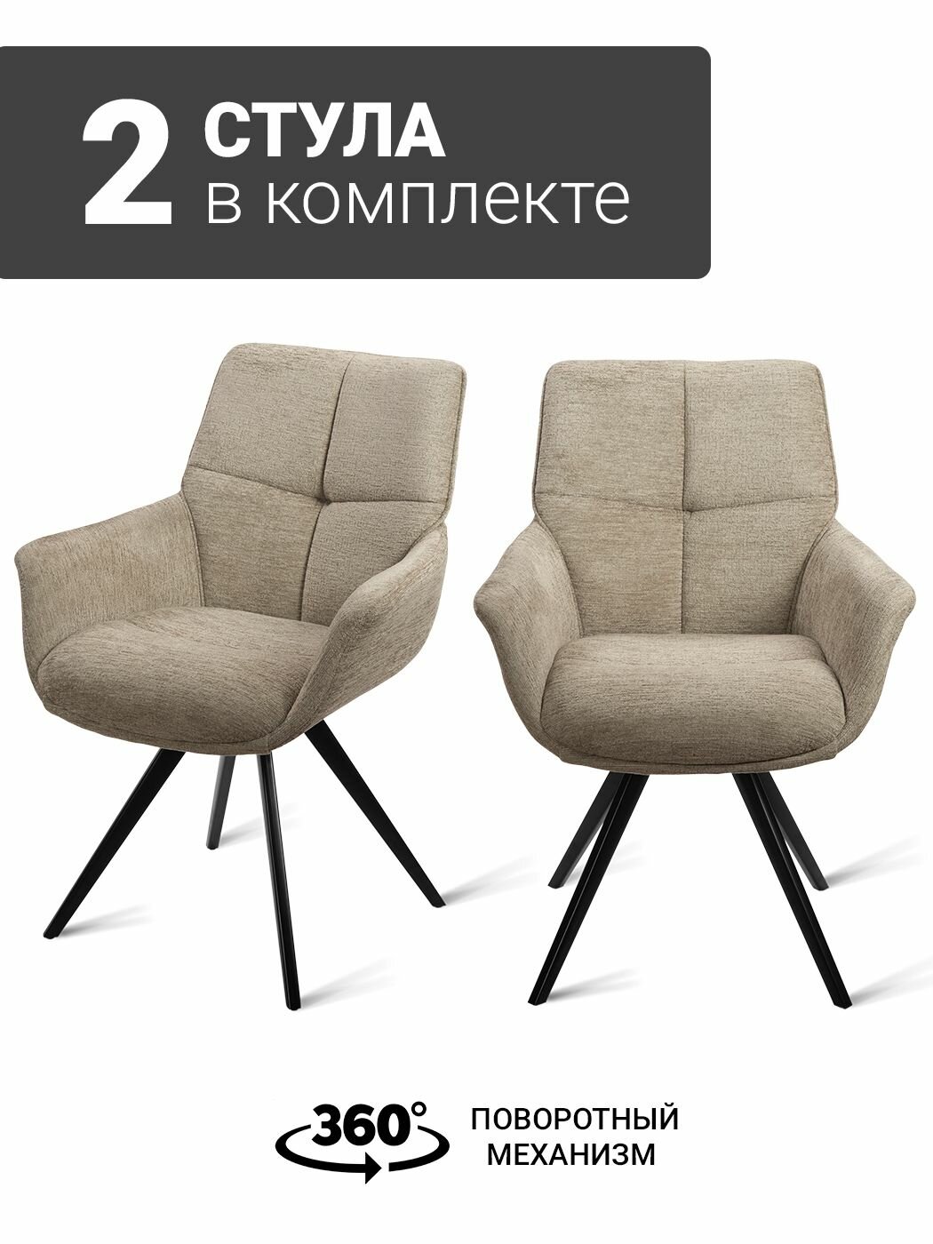 Стул-кресло B826-m GARDA LATTE BK (2 шт.) с поворотным механизмом, шенилл темно-бежевый, черные ножки информация: