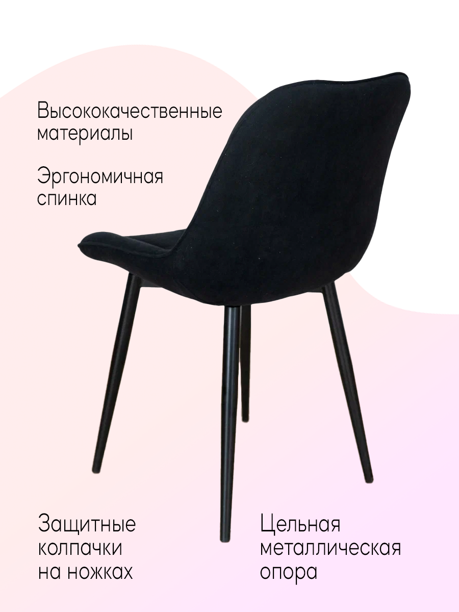 Стул EXPERTMEBEL "Румба", велюр, мягкий, для кухни и офиса, черный с черными ножками информация: