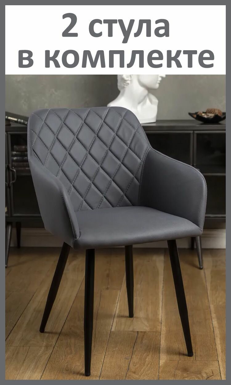 Стул кресло лофт Grande, цвет серый под кожу, черные ножки, ромбы 6 630 ₽