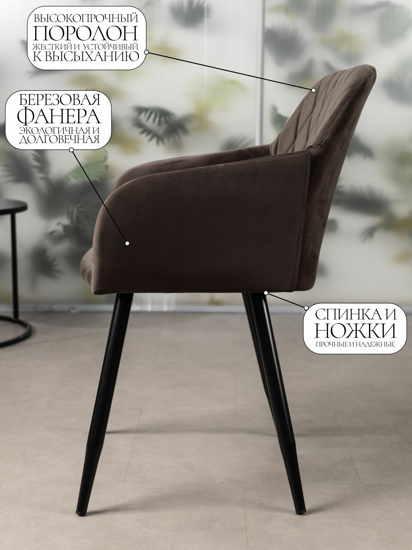 Кухонный стул кресло лофт Grande, цвет бежевый, велюр под кожу, черные ножки, узор ромбы 7 700 ₽