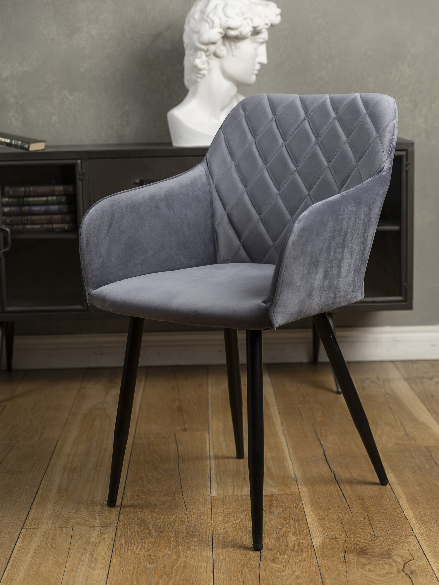 Стул кресло лофт Grande, цвет серый под кожу, черные ножки, ромбы 6 630 ₽