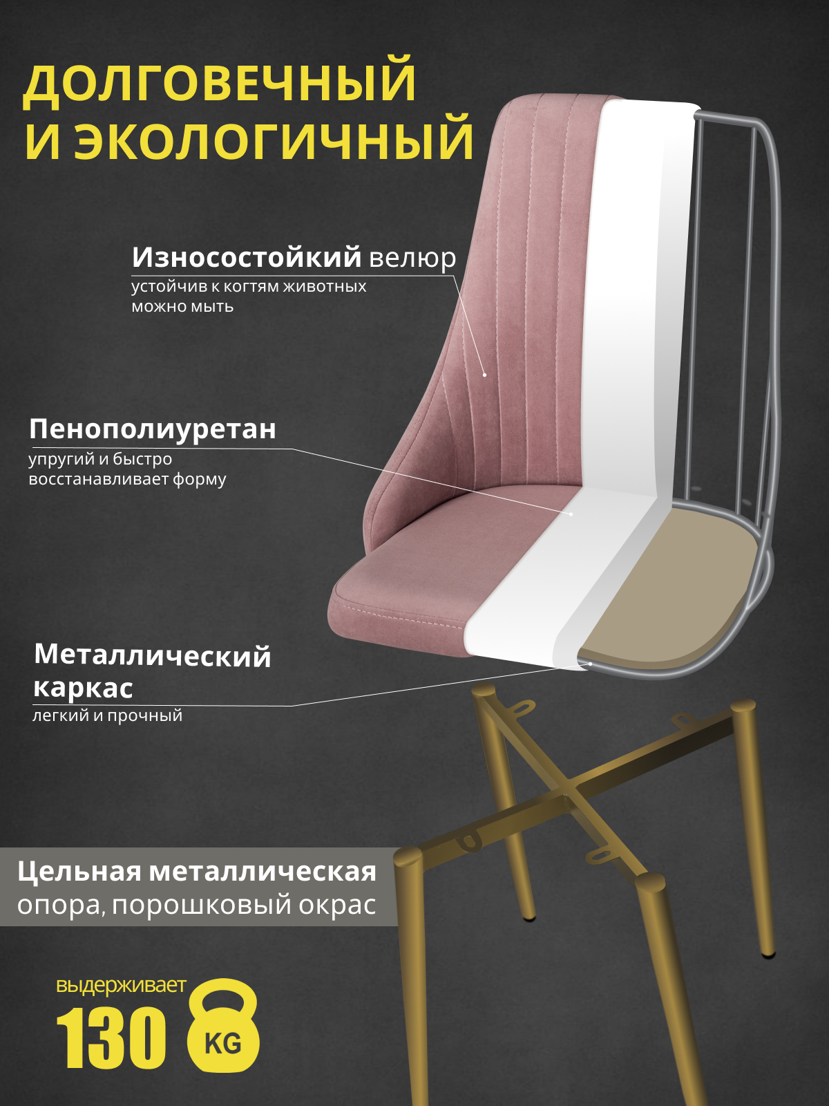 Отзывы на Стулья "Кора" Azzurro mebel, 2 шт, антивандальный велюр, розовый, золотистые ножки