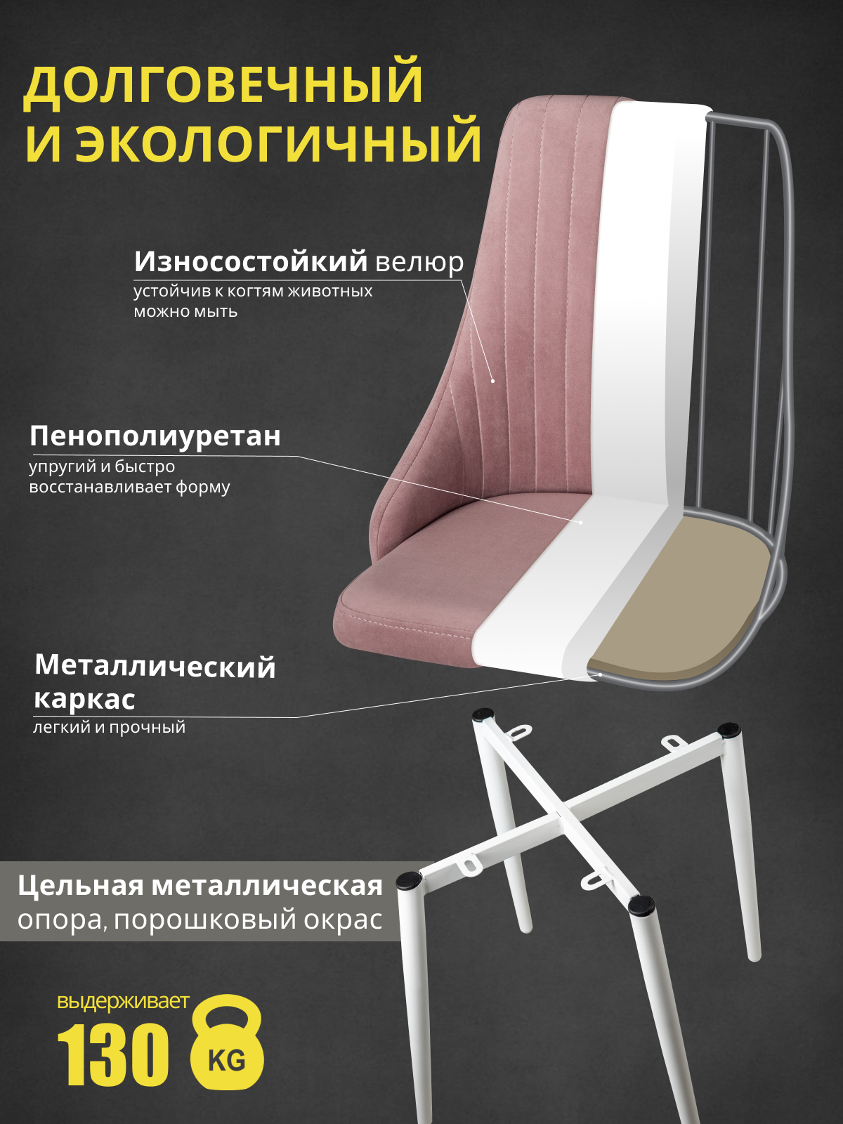 Характиристики этого товара не найдены!Отзывы на Стулья "Кора" Azzurro mebel, 2 шт, антивандальный велюр, розовый, белые ножки