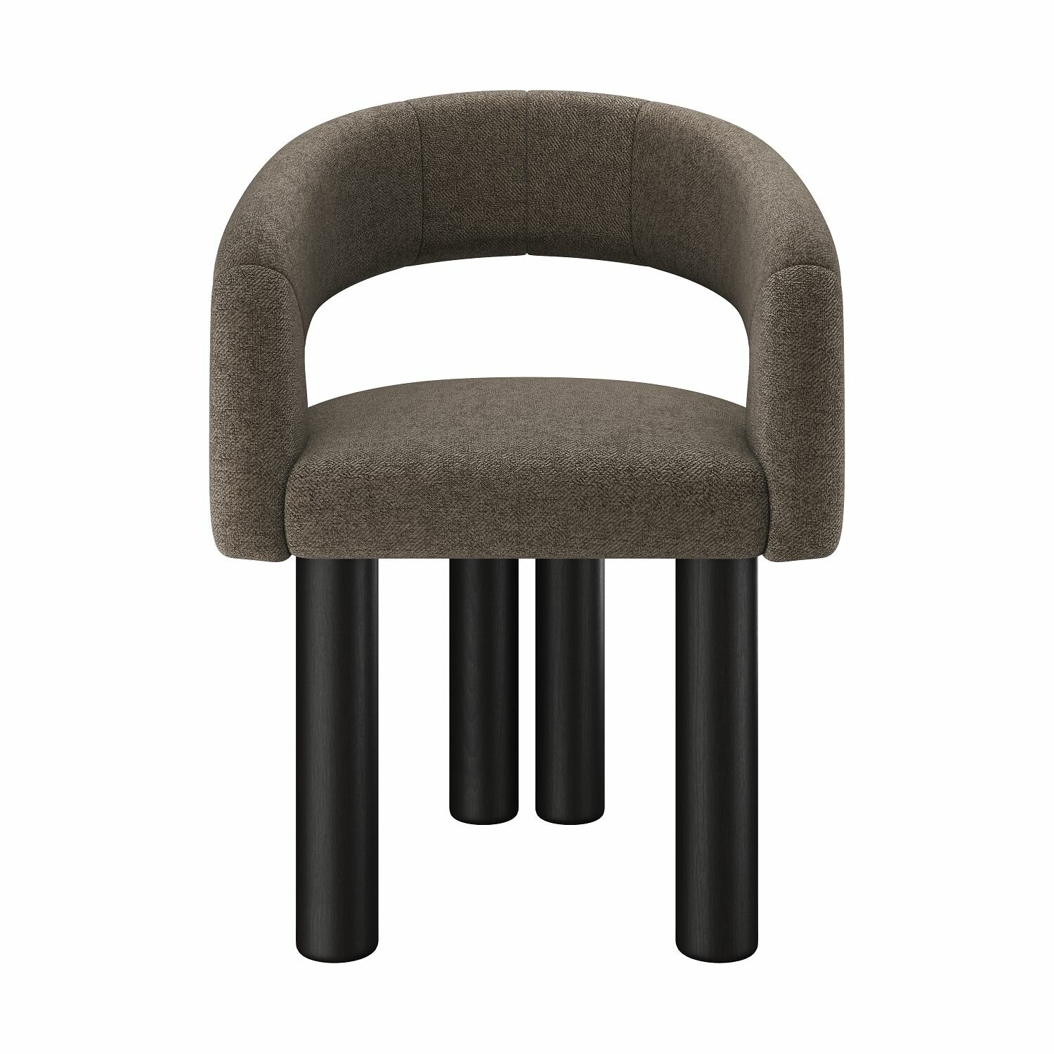 10 цен на Стул кресло PECOLA мягкое со спинкой с подлокотниками на деревянных ножках для отдыха стильный современный в гостиную в кухню в детскую , рогожка кофейная, ножки тон черный