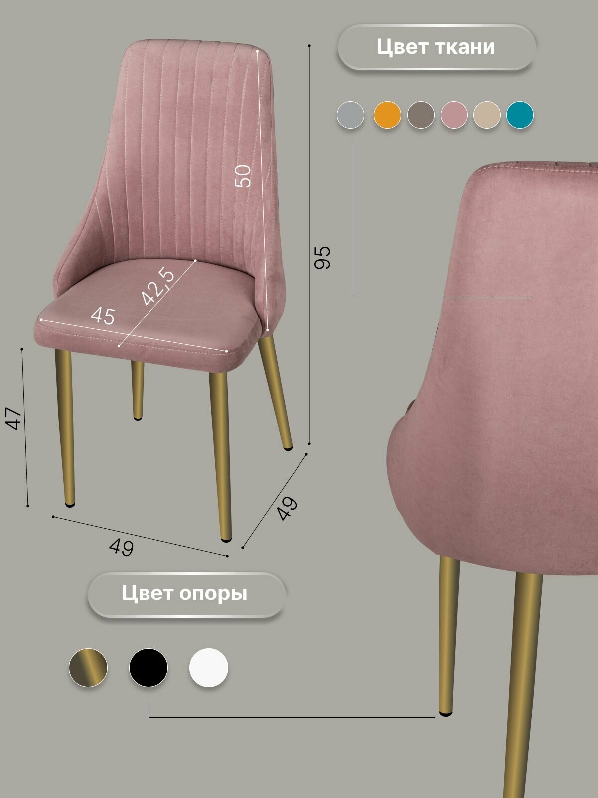 10 цен на Стулья для кухни со спинкой 2 шт, мягкие со спинкой, металлокаркас, «Луис», У Стулыча, розовый, золотистый