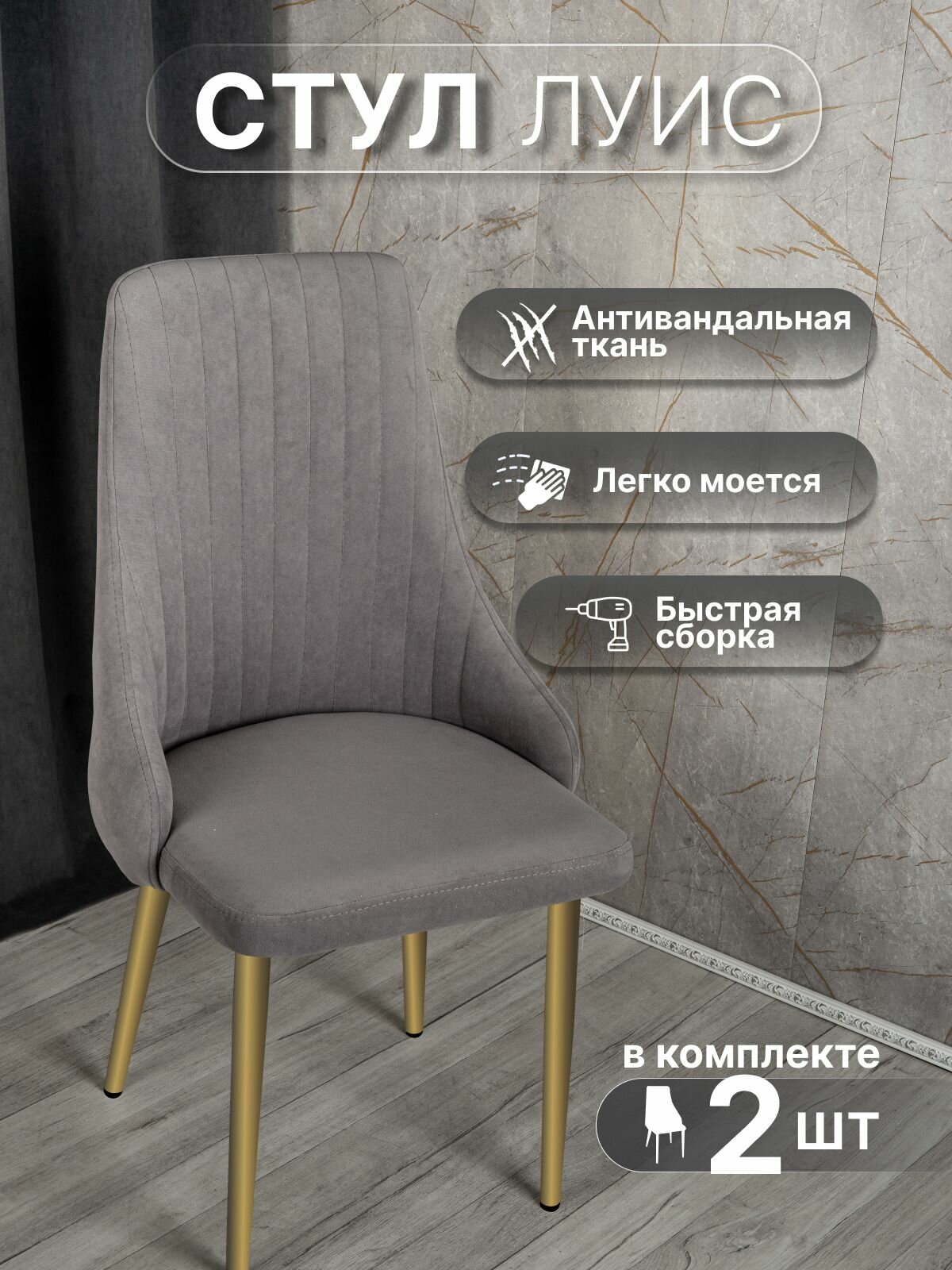 Стулья для кухни со спинкой 2 шт, мягкие со спинкой, металлокаркас, «Луис», У Стулыча, серый, золотистый 14 250 ₽