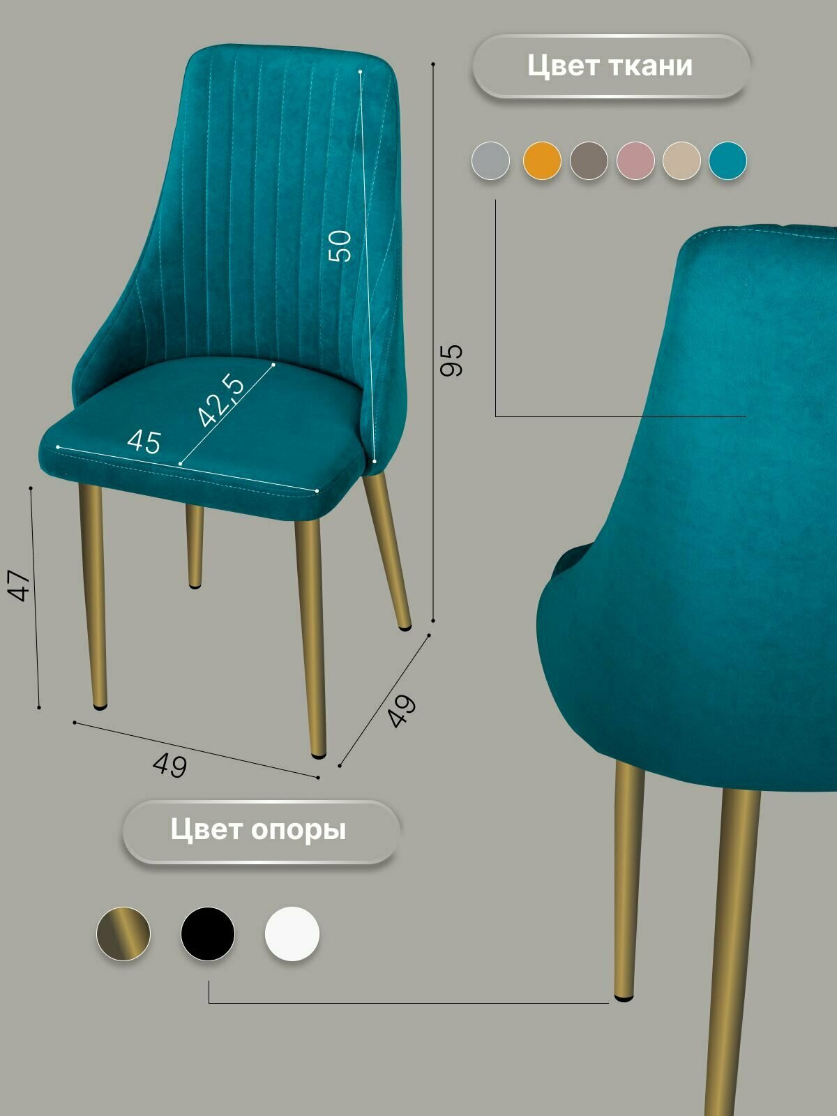 Стулья для кухни со спинкой 2 шт, мягкие со спинкой, металлокаркас, «Луис», У Стулыча, синий, золотистый информация:
