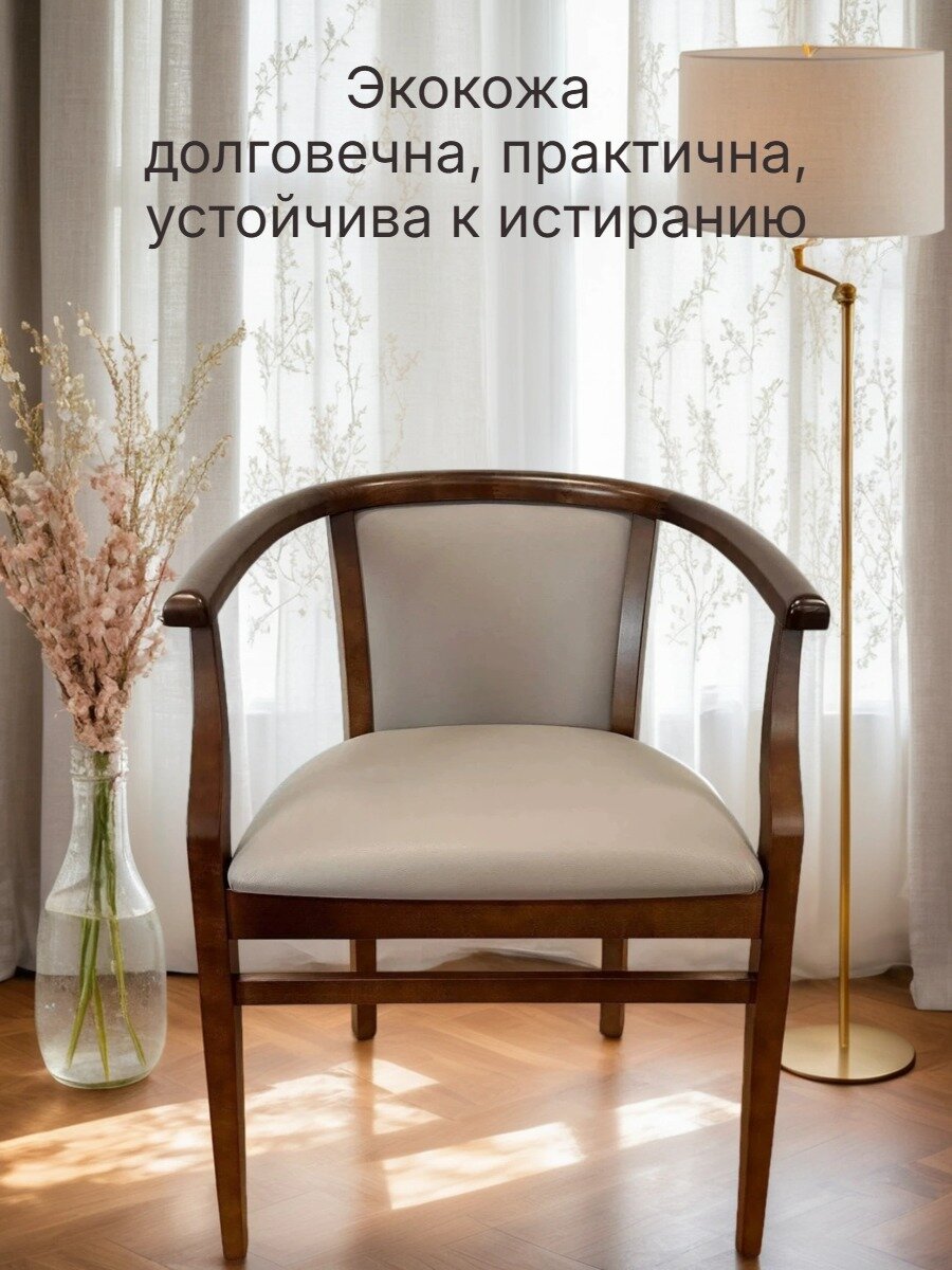 Стул для Кухни и Гостиной Каприз 6 с подлокотниками массив дерева тон 10 экокожа Domus smoky мягкое сиденье мягкая спинка для кафе дачи кабинета информация: