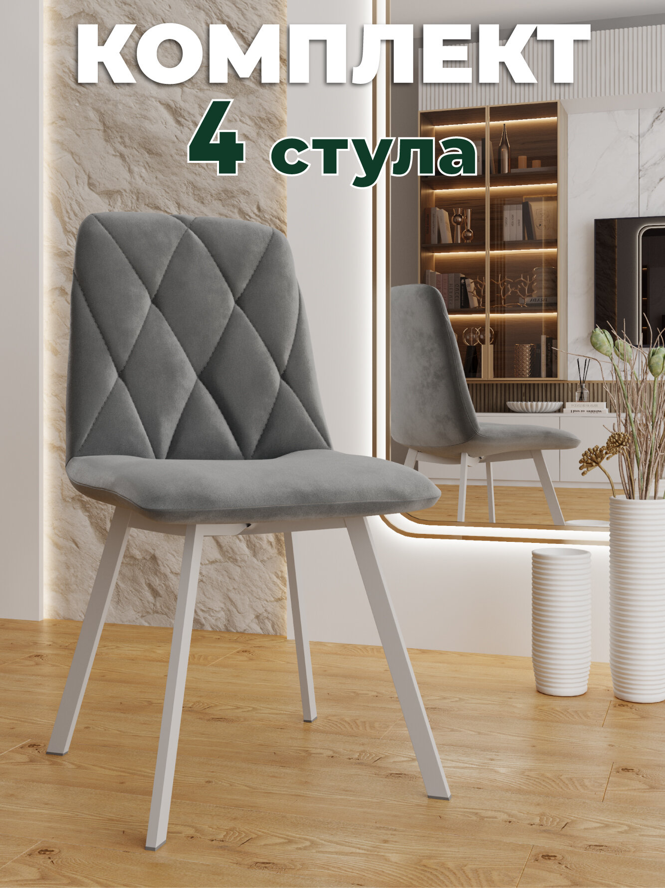 Комплект (4 шт) мягких стульев для кухни, кабинета DC-2103 велюр, серый на хромированном каркасе 16 500 ₽