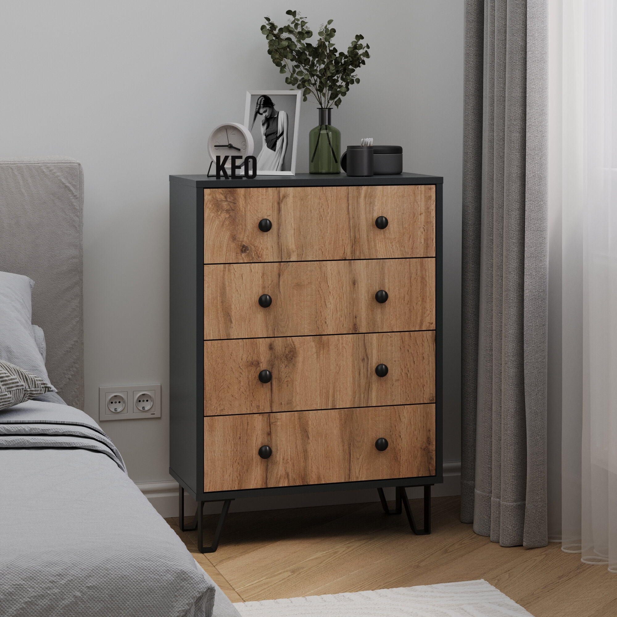 Комод для одежды 87х35х60см вещей в гостиную спальню детскую графит вотан серый антрацит с ящиками на ножках Кео КМД-247 информация: