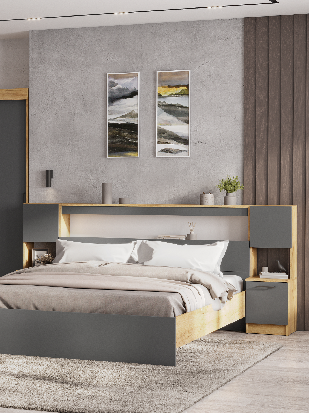 Комод для одежды с полками Нонтон Ангара дуб крафт белый / графит 160.2х47.6х104 см