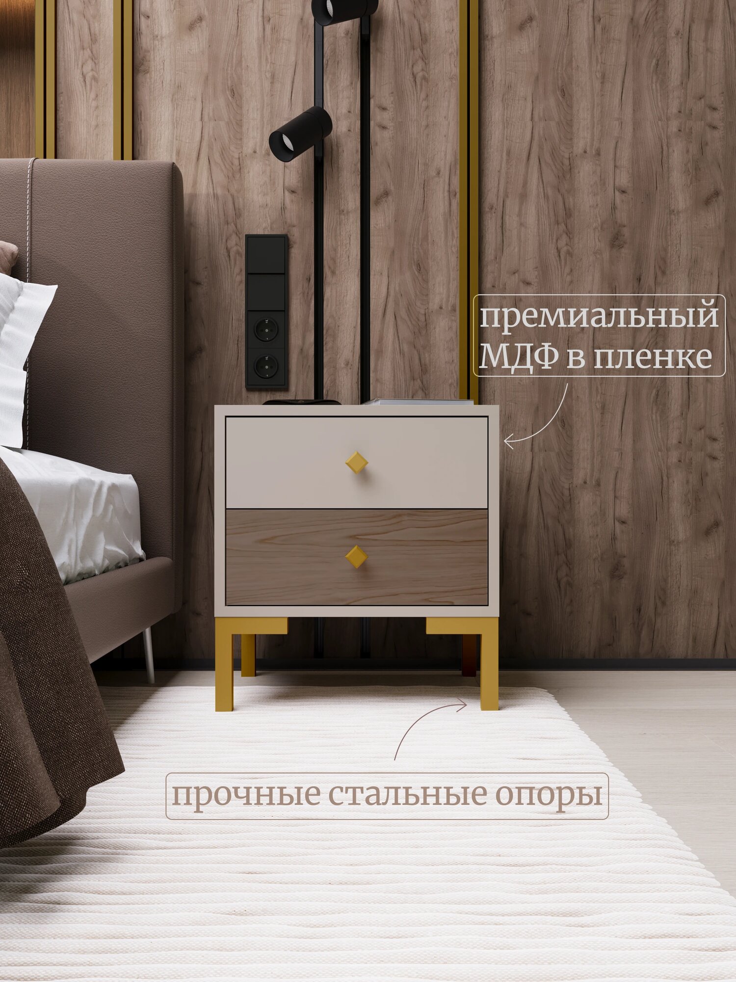 Тумба прикроватна на ножках бежевая СКАЛА-2 дуб крафт золотой/латте, 43.6х40х47.4 8 250 ₽