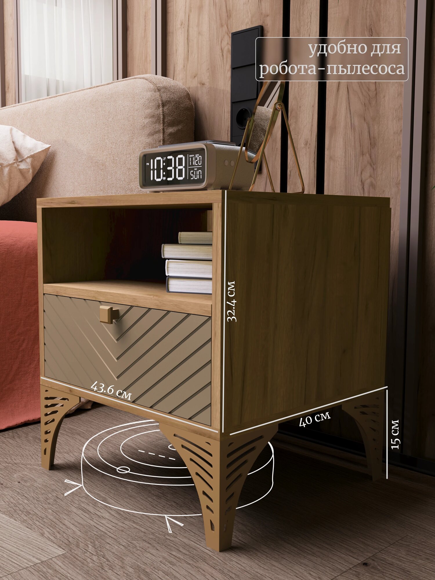 Тумба прикроватная на ножках бежевая СКАЛА-1 дуб крафт золотой/латте, 43.6х40х47.4 информация:
