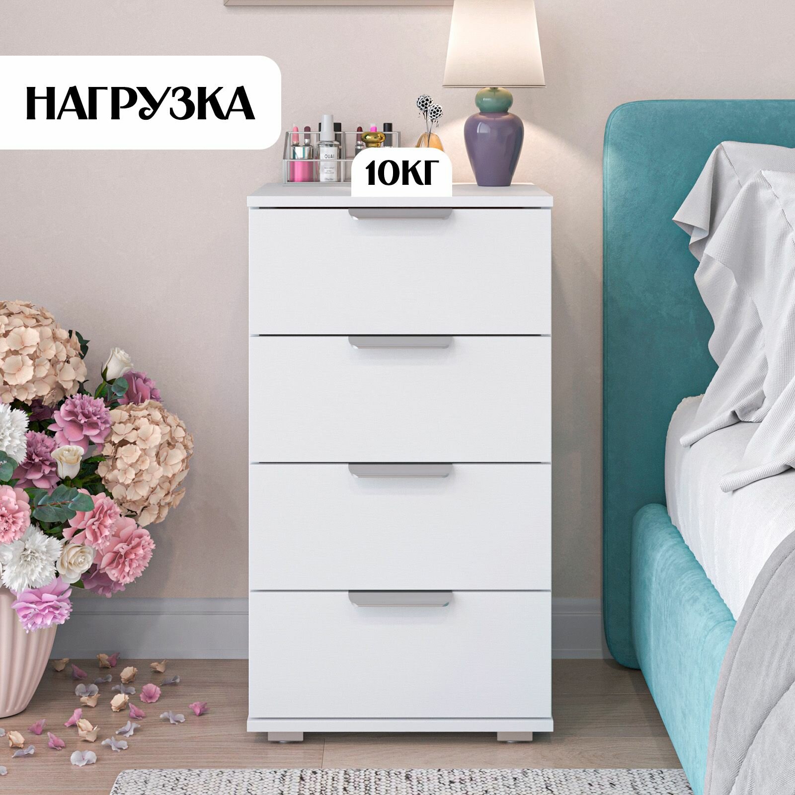 10 цен на Комод LETTA, для одежды, ЛДСП, 4 выдвижных ящика, матовый, белый