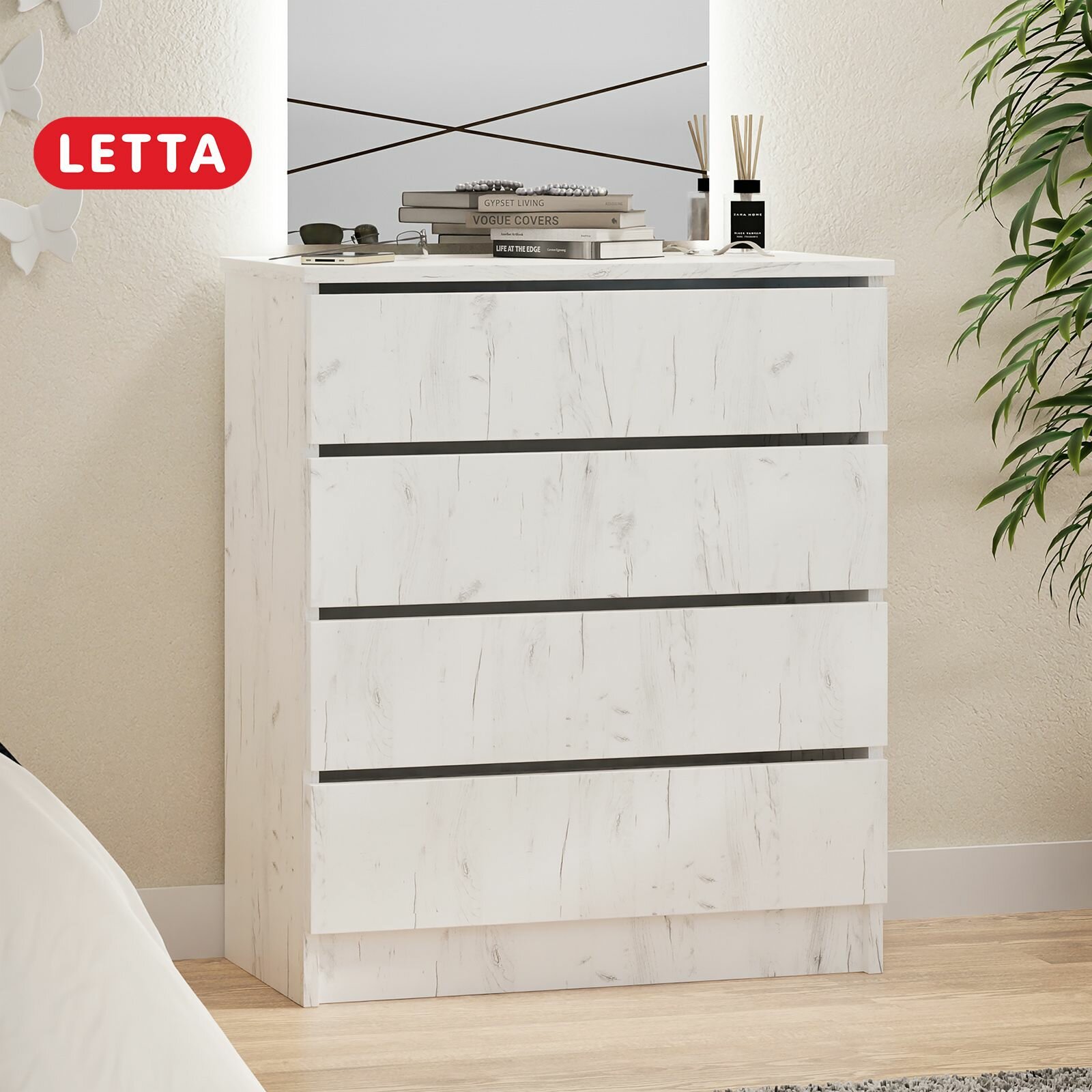 10 цен на Комод LETTA Индиго, ЛДСП, 4 ящика, белый, с выдвижной внутренней секцией