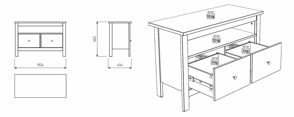 Сага тумба 2 ящика, 90х41х62 см, серая информация: