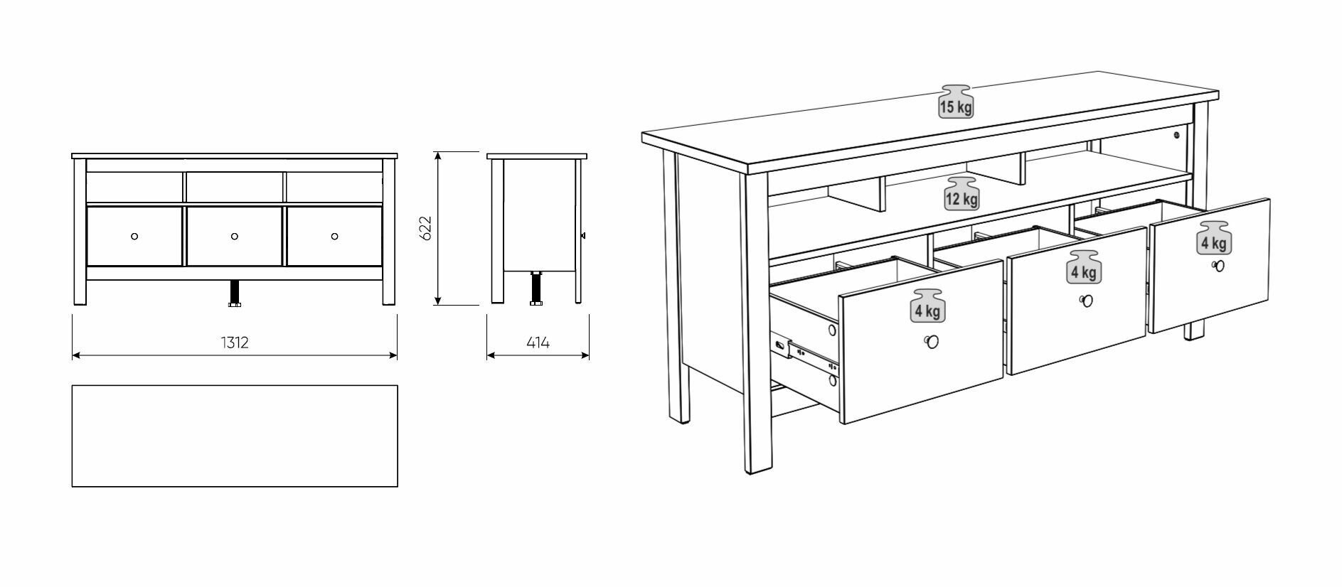 Тумба ГУД ЛАКК "сага", 3 ящика, 131х41х62 см, шариковые направляющие с доводчиком, серая 15 999 ₽