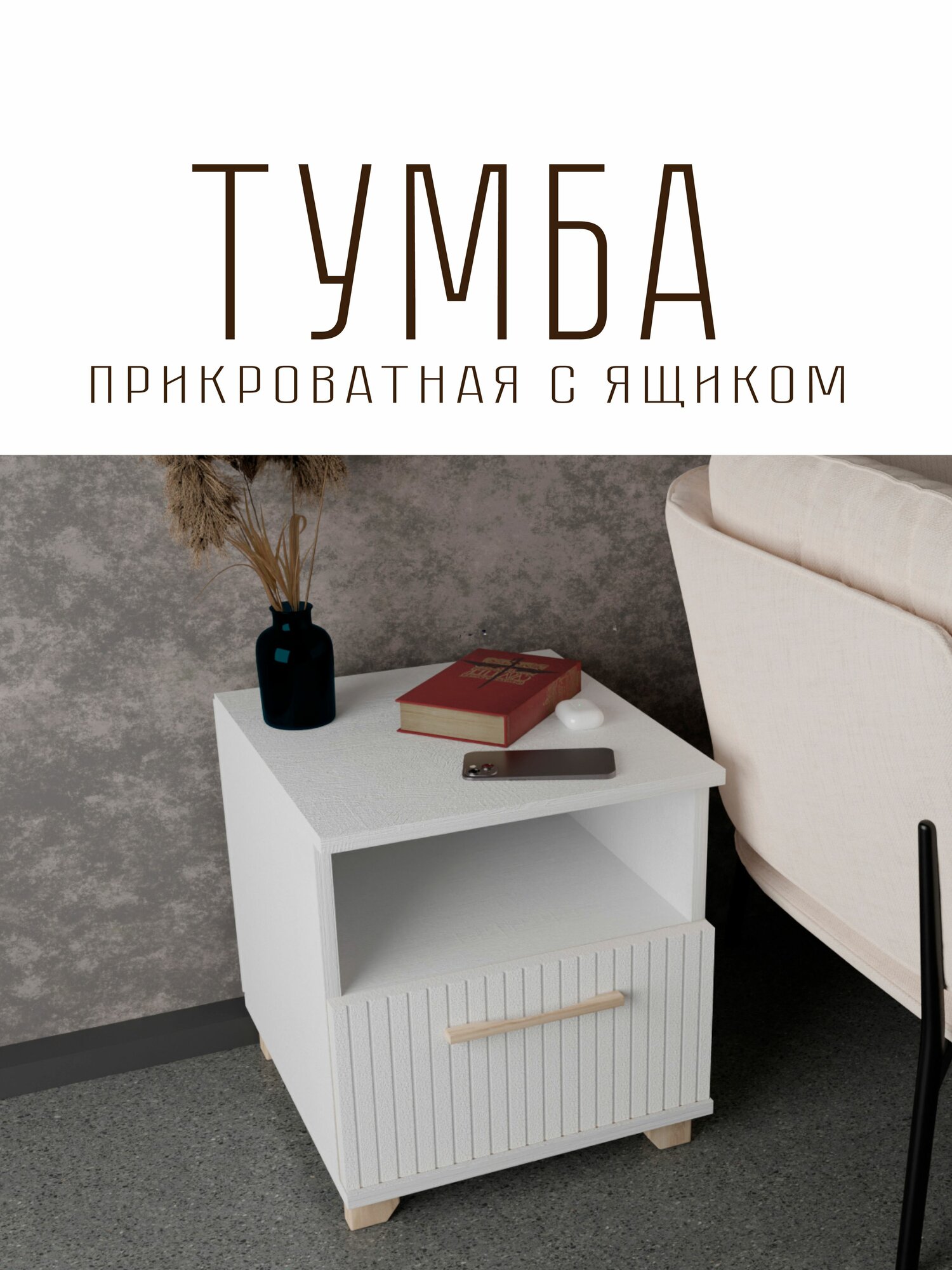 Отзывы на Тумба прикроватная Копенгаген с ящиком ЛДСП Белый шагрень / МДФ Белый матовый 40х40x45