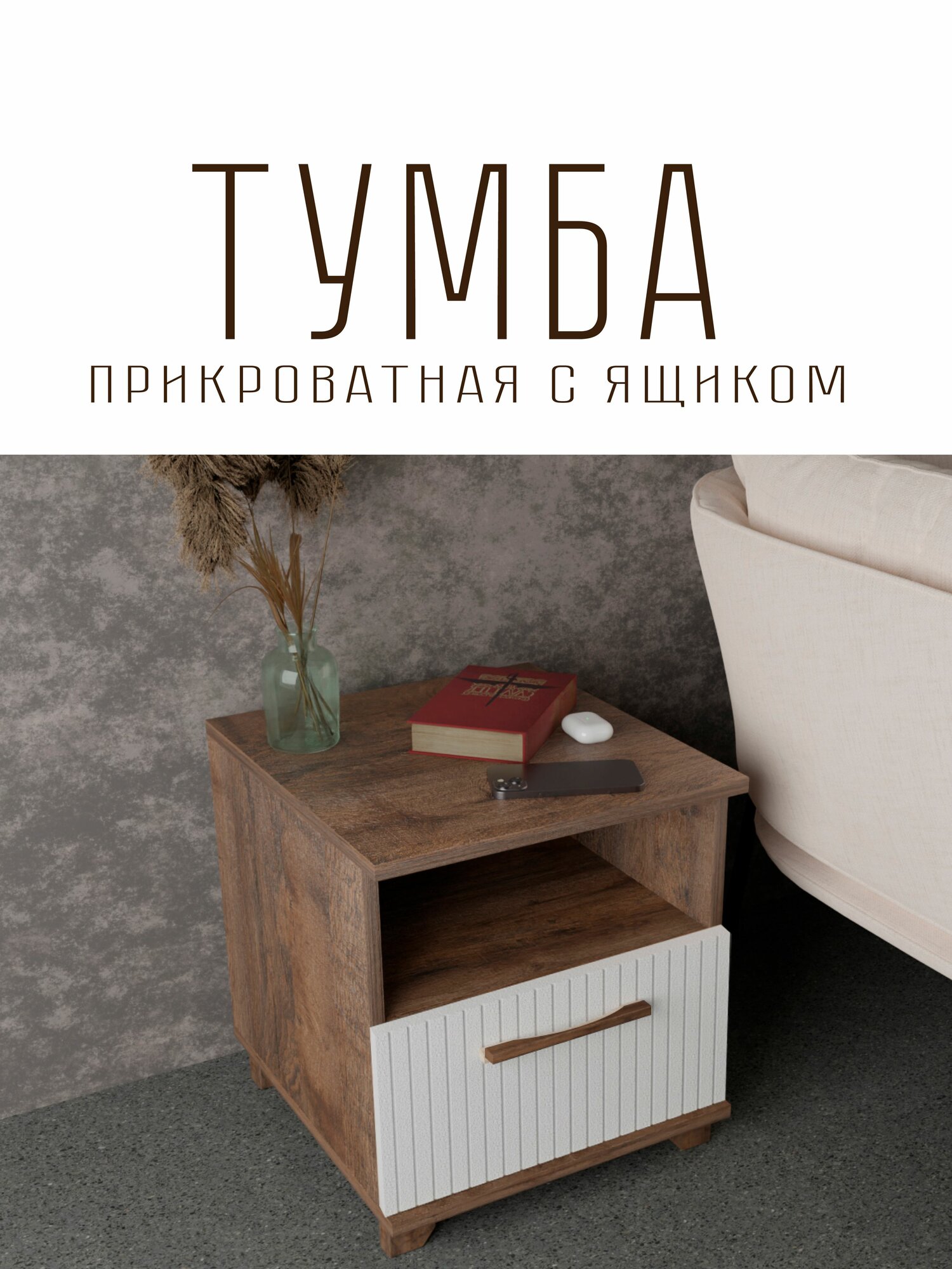 10 цен на Тумба прикроватная Копенгаген с ящиком ЛДСП Дуб самдал / МДФ Белый матовый 40х40x45