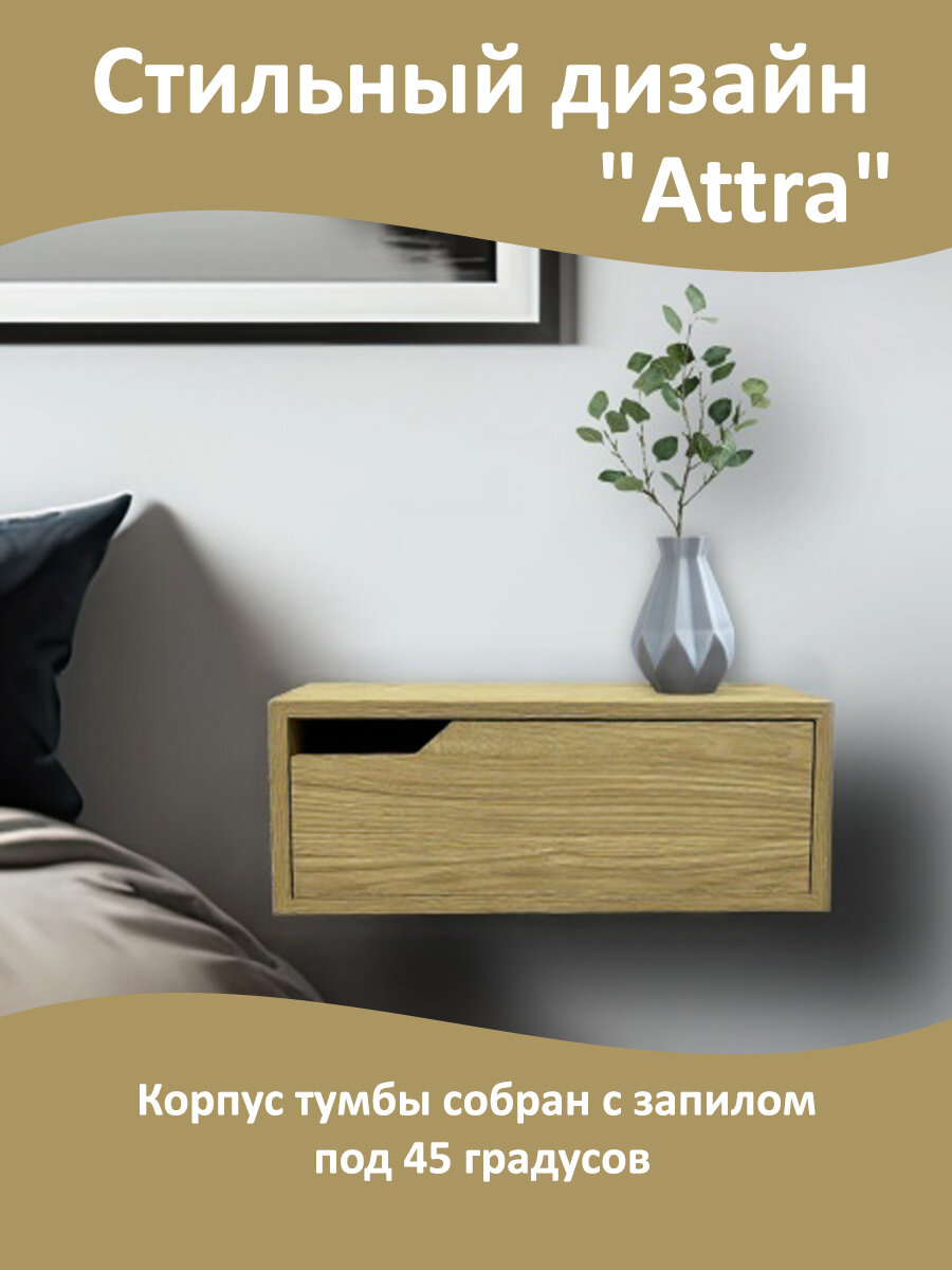 10 цен на Тумба прикроватная "Attra" подвесная в спальню, настенная, 1 ящик, сторона левая, 55х30х20 см