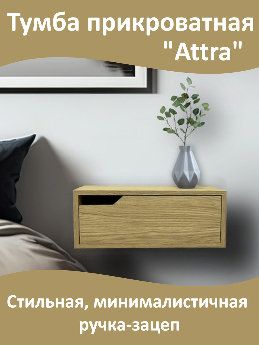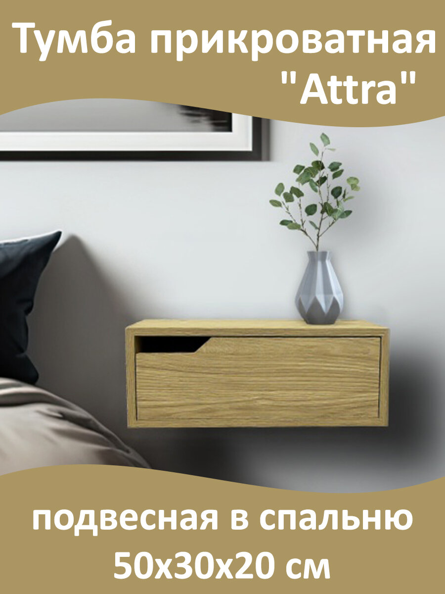 10 цен на Тумба прикроватная "Attra" подвесная в спальню, настенная, 1 ящик, сторона левая, 50х30х20 см, консоль