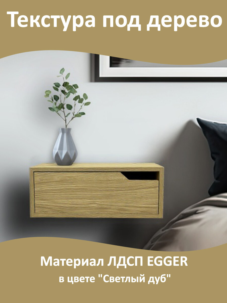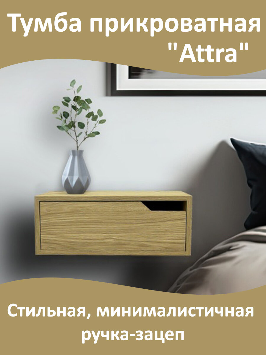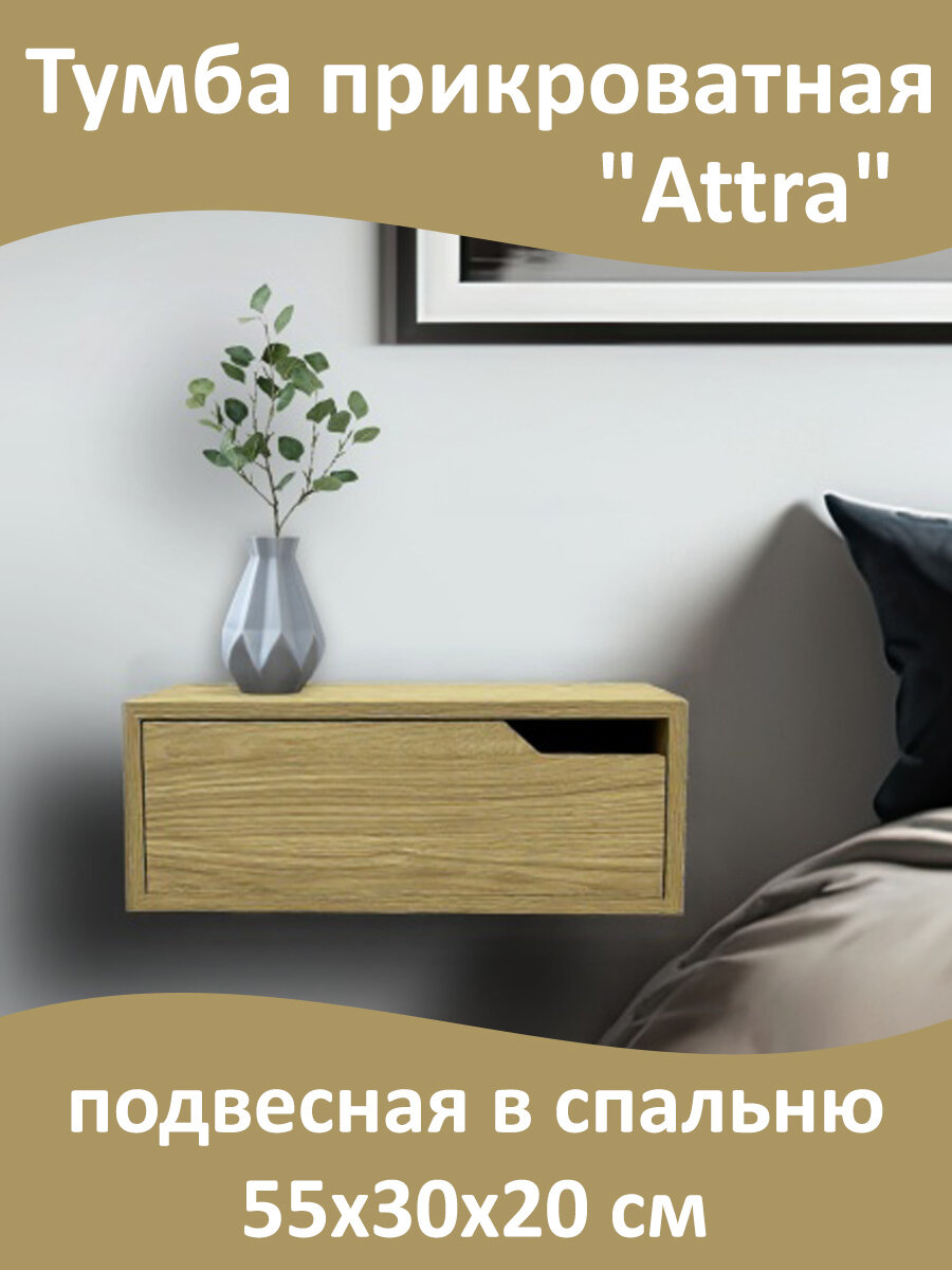 Тумба прикроватная "Attra" подвесная в спальню, настенная, 1 ящик, сторона правая, 55х30х20 см информация: