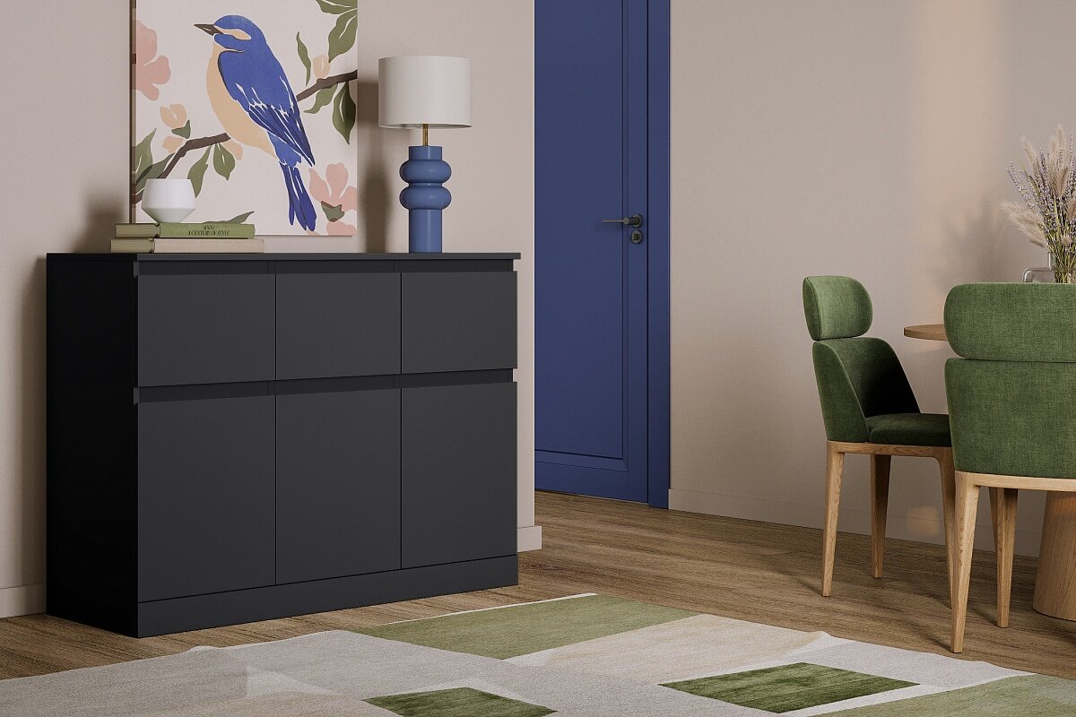 Комод МебельЛэнд24 Мальм - 24 Черный 120x40x77 трехдверный с 3 ящиками информация: