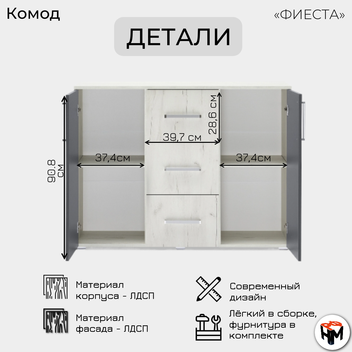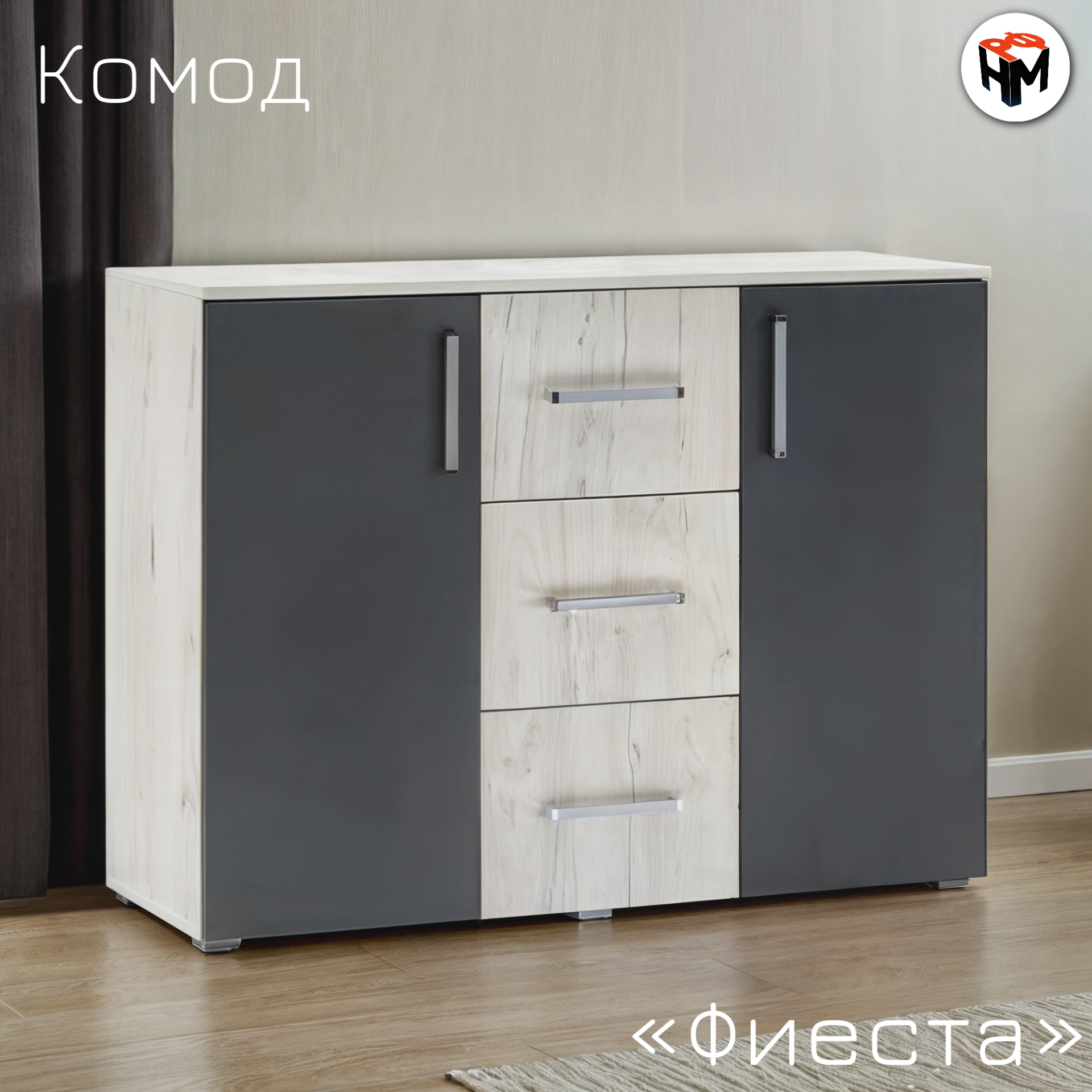 Отзывы на Комод Фиеста 3 ящика, 2 дверцы/Тумба 120х90х45 см, Дуб крафт белый/Графит, ЛДСП
