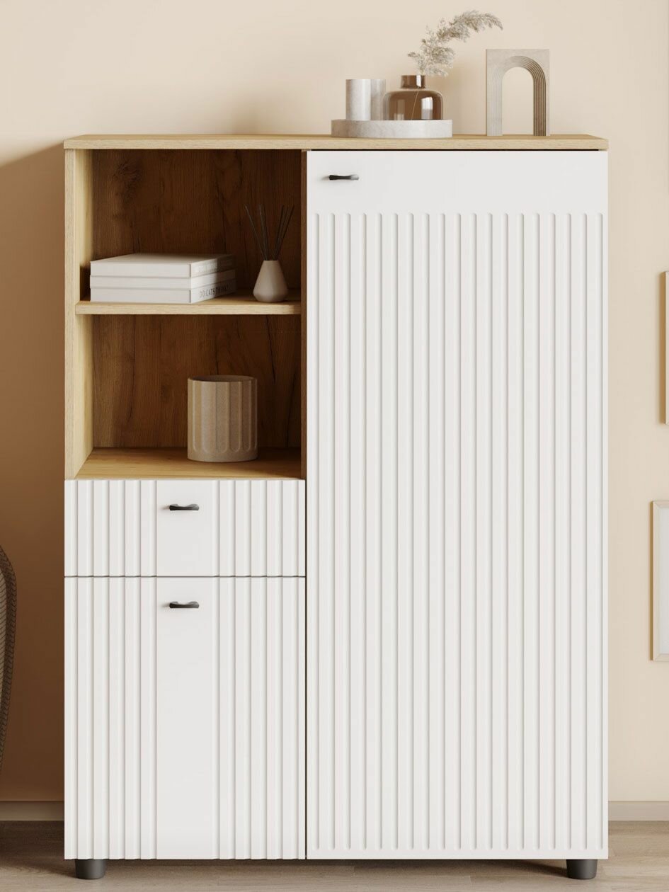 Отзывы на Комод для одежды Ларенс с ящиком и полками, 90.1х41.6х128.6 см, Дуб золотой / Белый матовый
