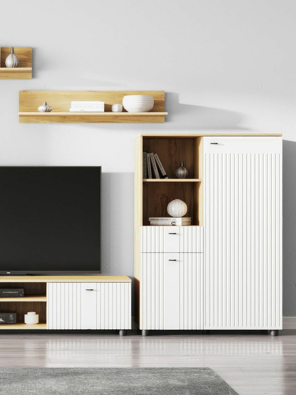 10 цен на Комод для одежды Ларенс с ящиком и полками, 90.1х41.6х128.6 см, Дуб золотой / Белый матовый