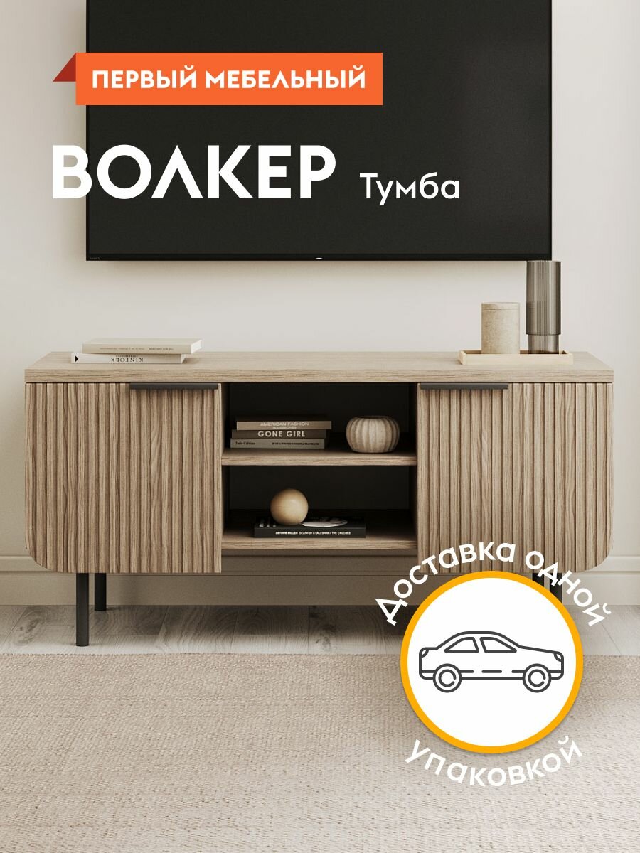 10 цен на Тумба под телевизор Волкер с нишей, напольная, с полками, 114х45х55 см, Дуб Сальвадор, ЛДСП / Дуб светлый, МДФ