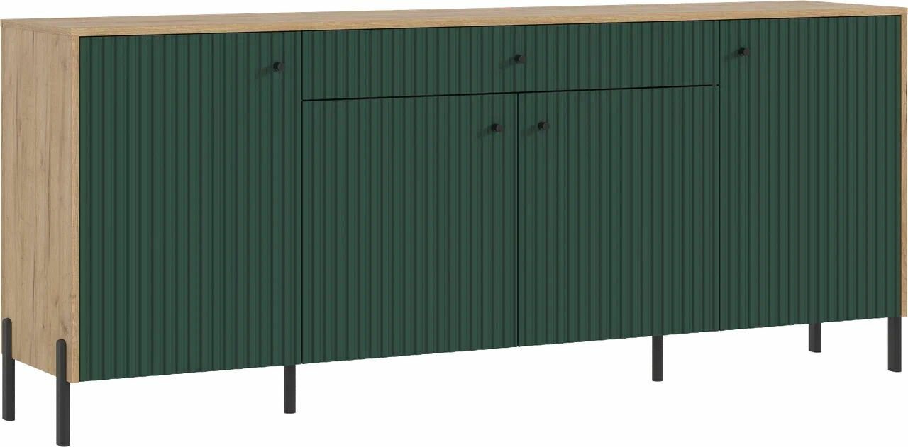 Комод Оливия МИФ (металл) 2000х830х42,6 (Дуб Крафт/Браш Мени Грин) 200*42*83, ЛДСП информация: