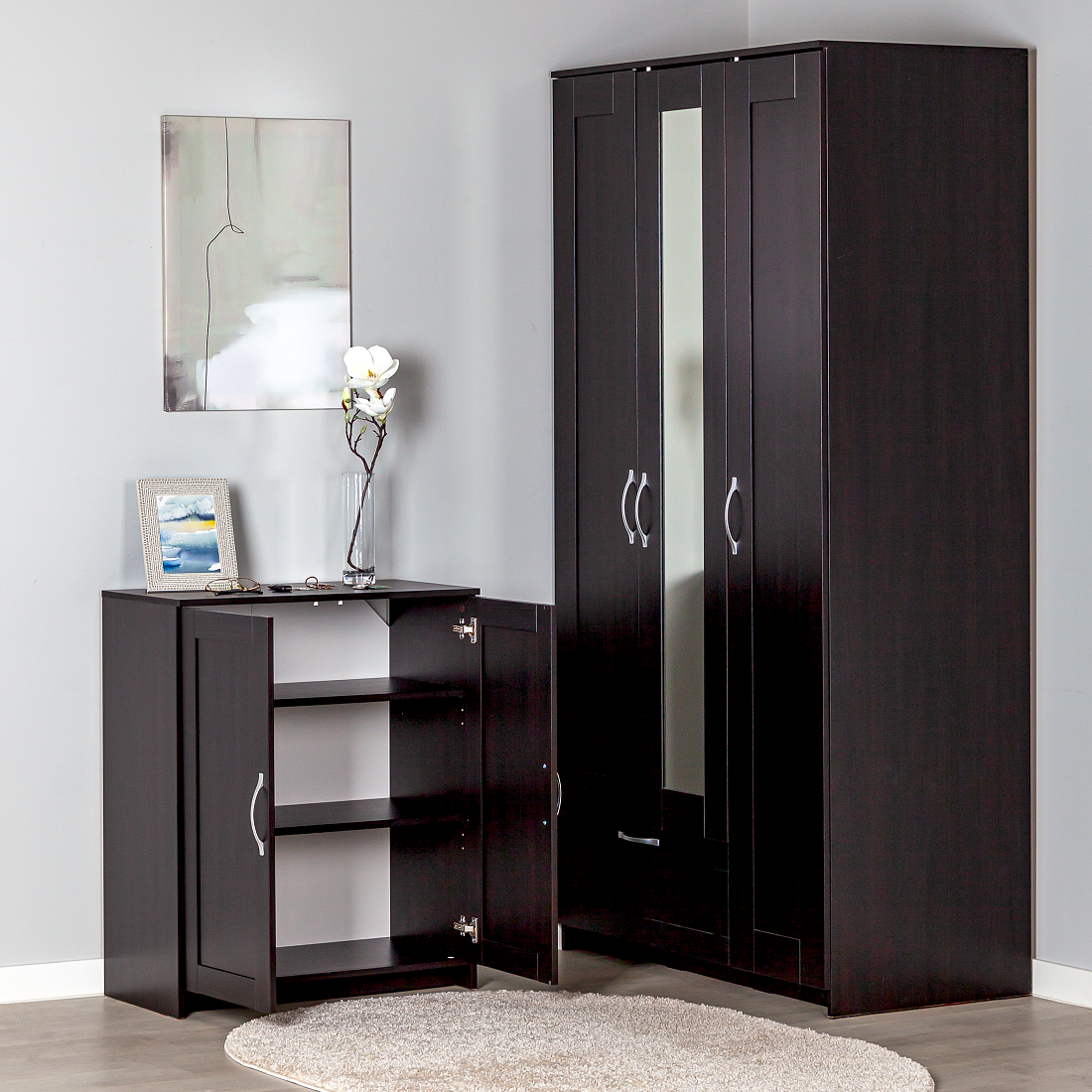 Тумба под ТВ, книжный шкаф, шкаф навесной модульный POINT 33 Серый Графит