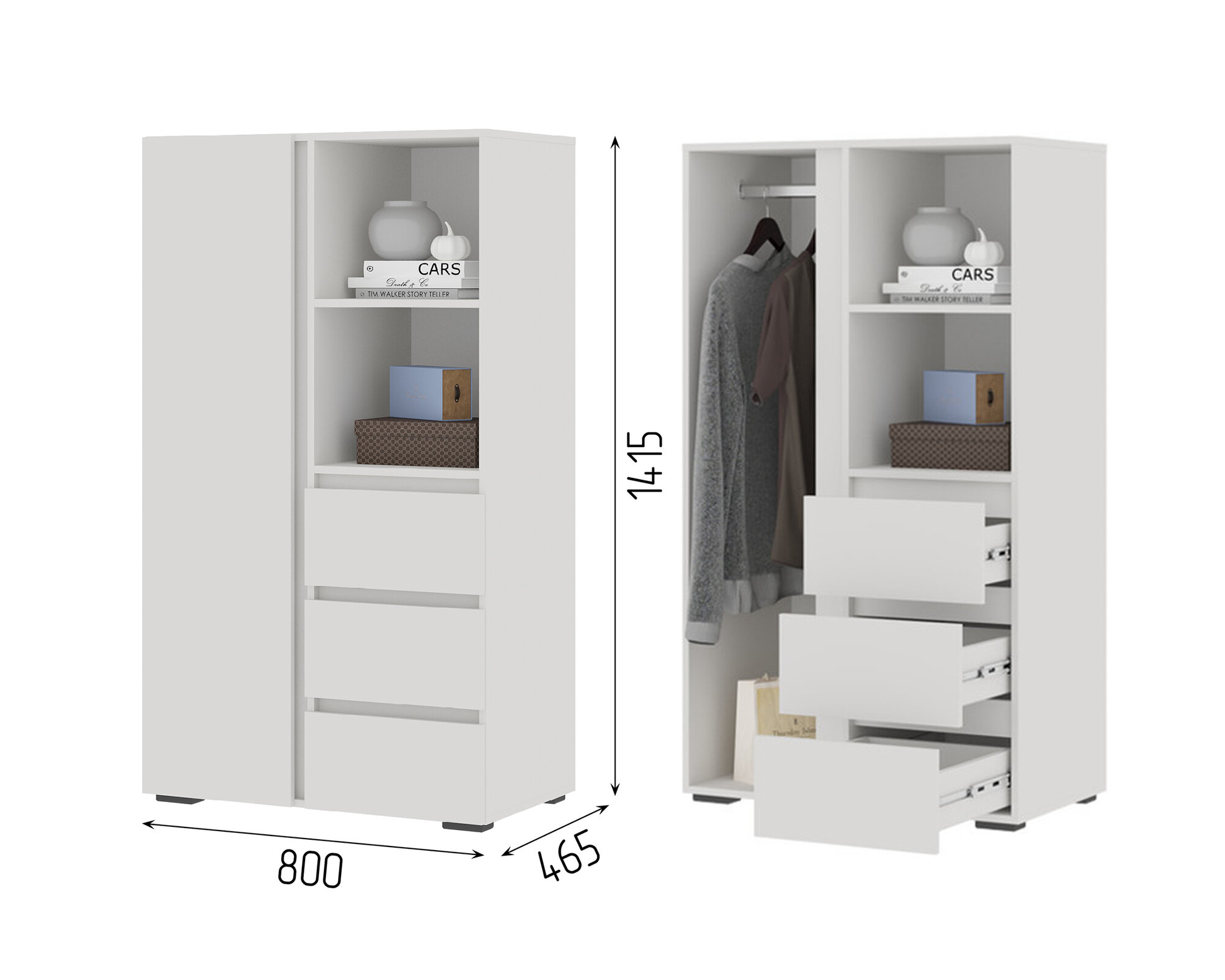 Шкаф Хелен ШК-03 с выдвижными ящиками (0,802х1,414х0,460) цвет Белый Стендмебель информация: