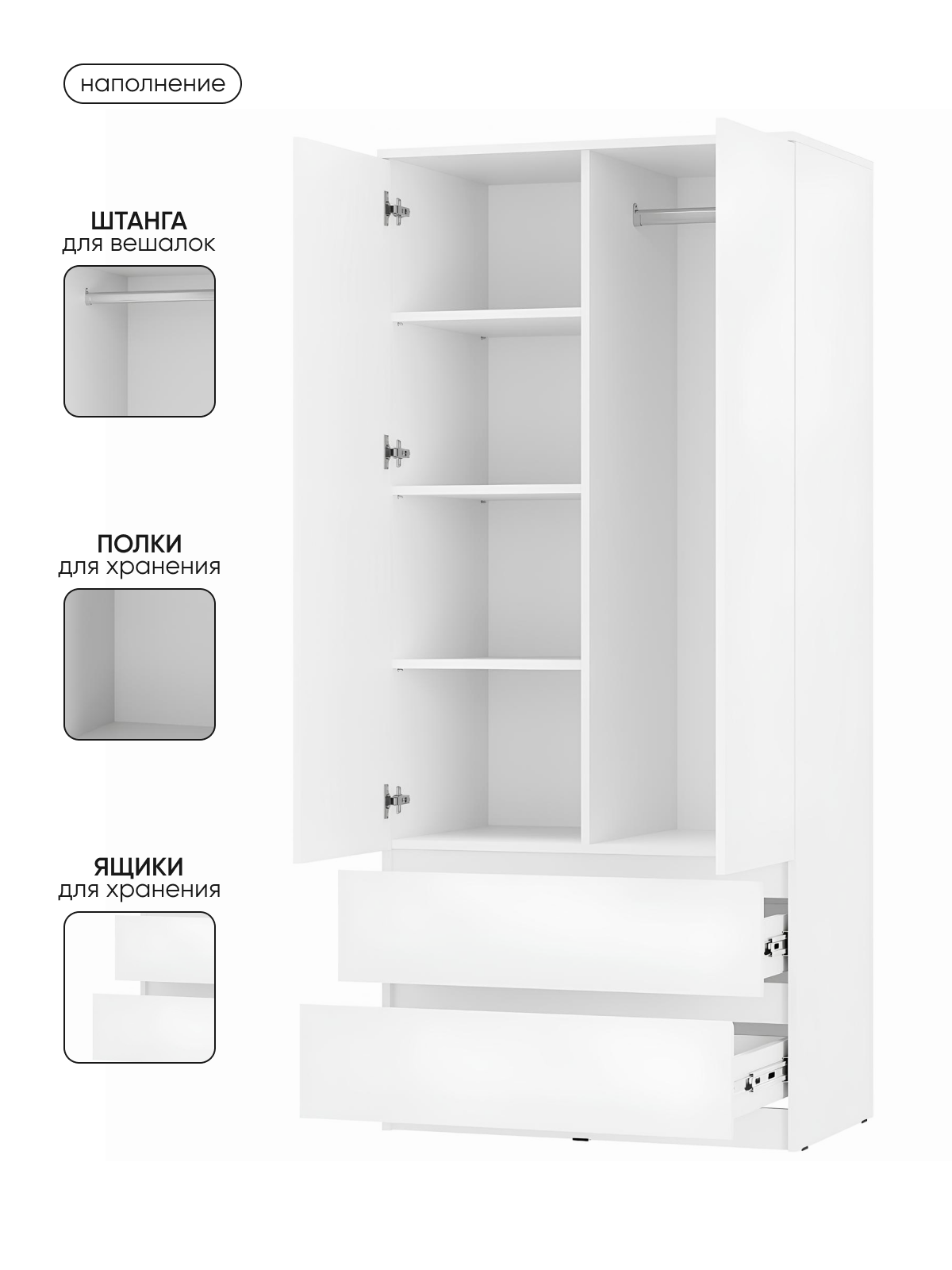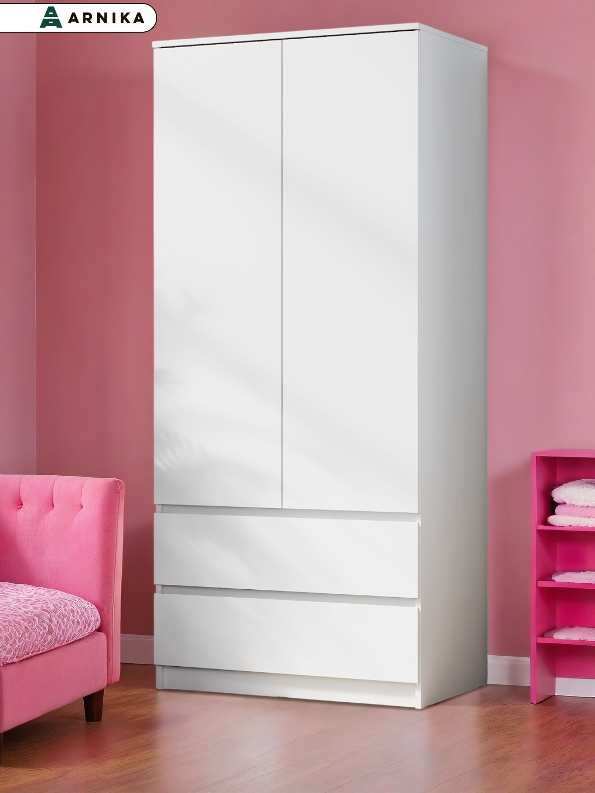 Шкаф ARNIKA "Симпл", 2-створчатый, белый, с ящиками, 80х51,4х190см информация: