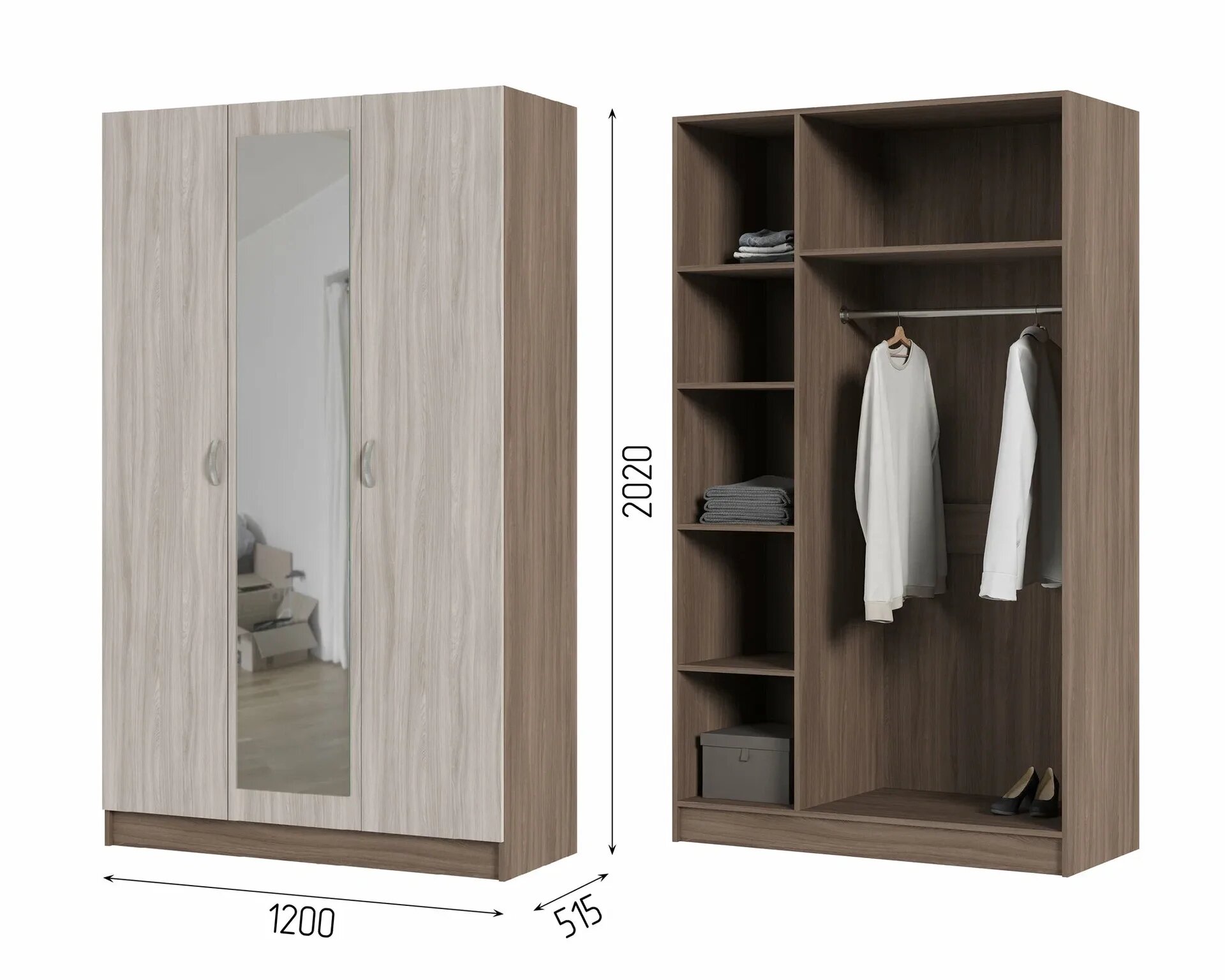 Шкаф 3-х створчатый ШК 553 «Бася», шимо тёмный/светлый (1200х506х2020) информация: