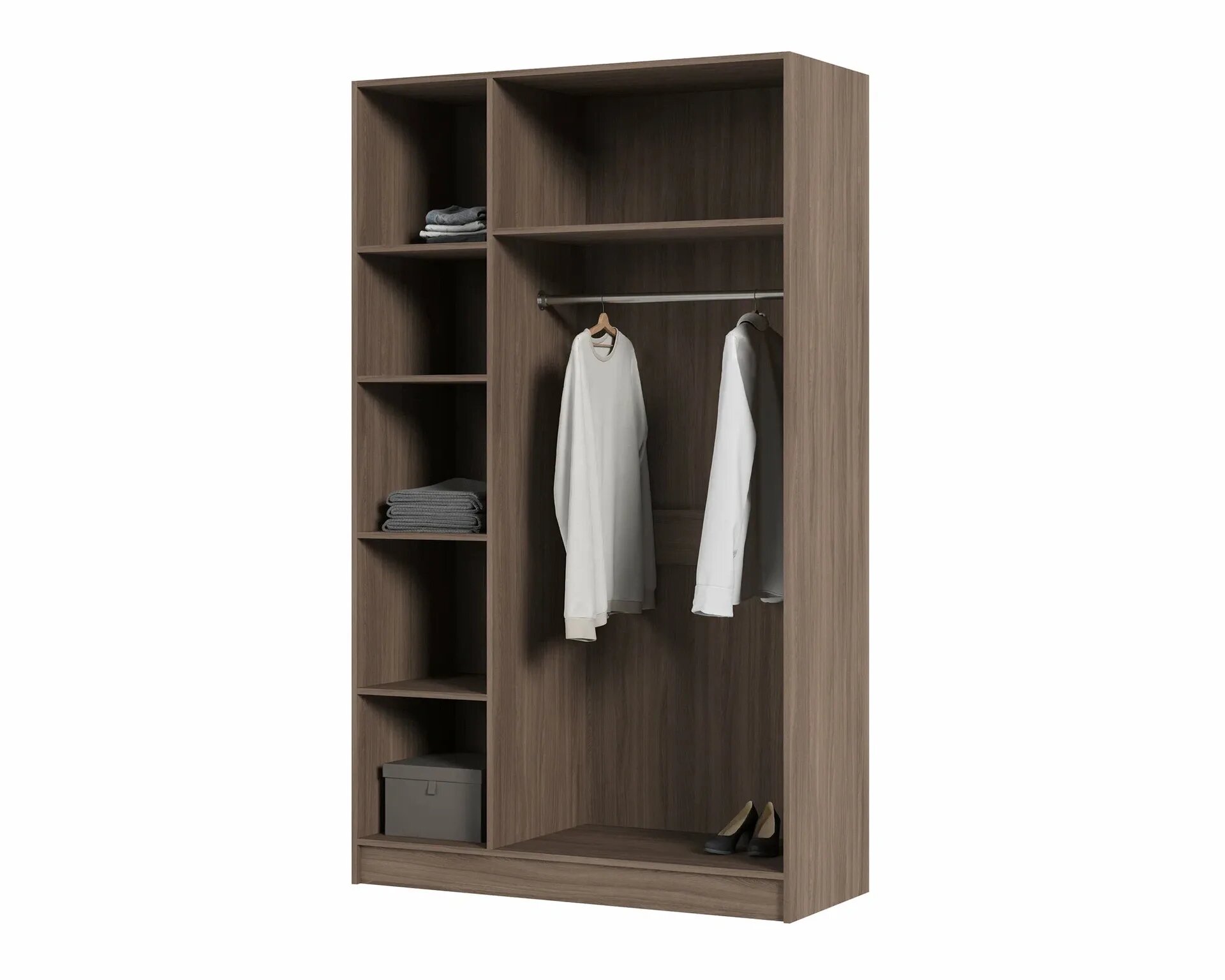 Шкаф для одежды распашной Нонтон Луас, 120 см, 7 полок и штанга, белый глянец