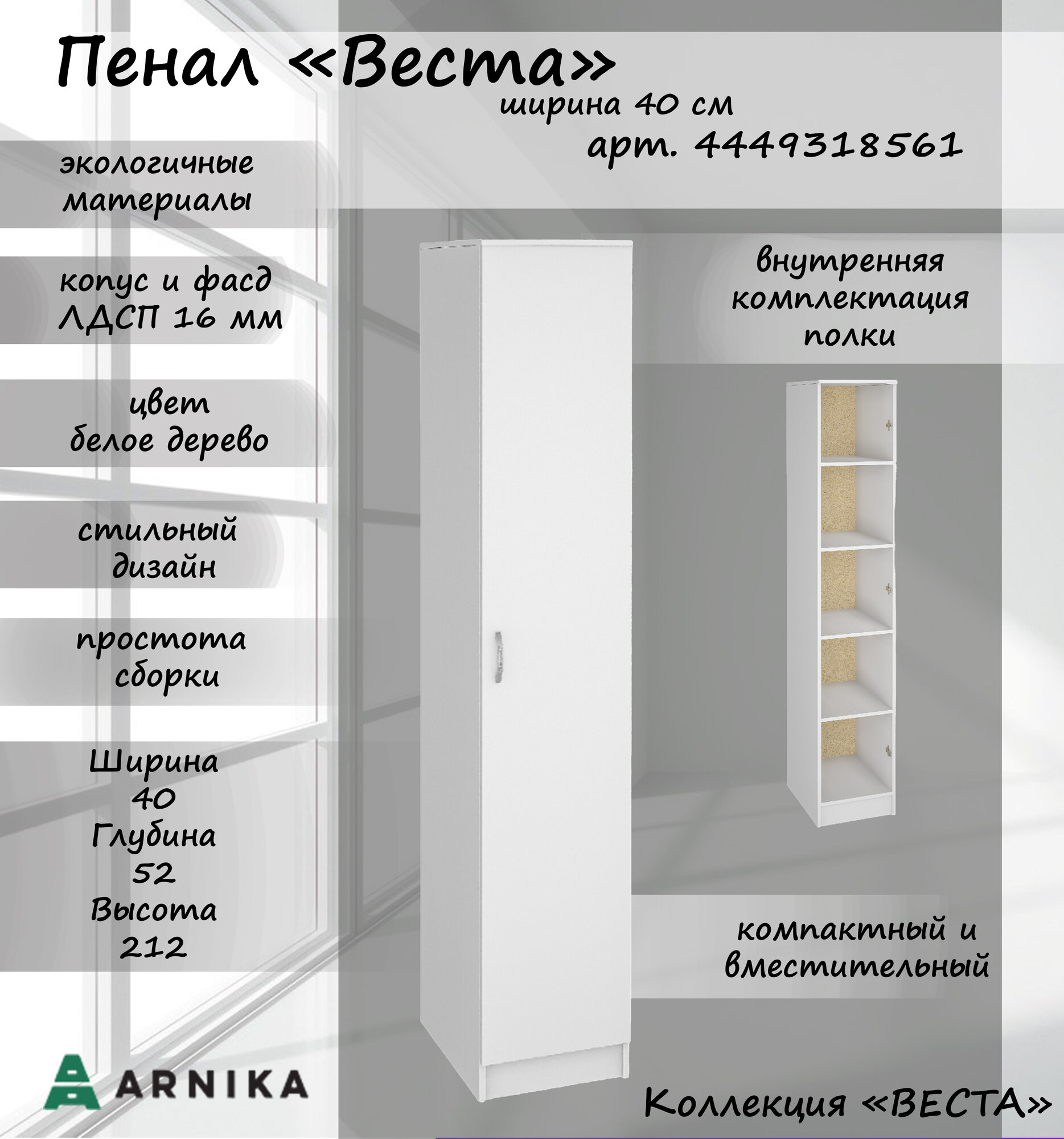 Пенал Ронда, ЛДСП, белый, модульный, универсальный, 40 x 52 x 212см информация: